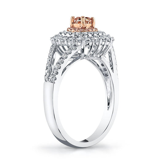 14K 0.10ct Cushion Pink Diamond 0.05cttw Pink Diamond 0.69cttw VS White Diamond Ring