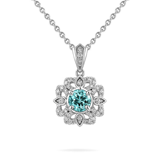 14K 0.38ct Round Paraiba 0.25cttw VS White Diamonds Pendant