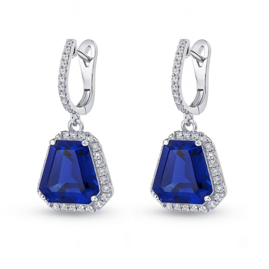 18K 13.70cttw Fancy Cut Blue Wing Tanzanite 0.85cttw VS White Diamonds Drop Earrings