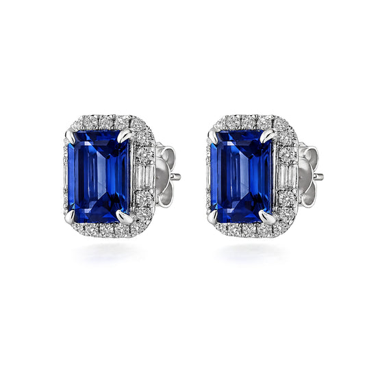 18K 8.82cttw Emerald Cut Blue Wing Tanzanite 1.09cttw VS White Diamonds Stud Earrings