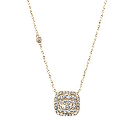 14K 1.13cttw VS White Diamond Square Cluster Necklace