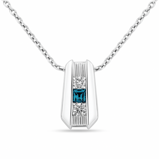 Platinum 1.30ct Oval Blue Zircon 0.03cttw White Diamonds Designer Necklace