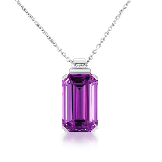 14K 20.41ct Emerald Cut Kunzite 0.04cttw White Diamonds Pendant