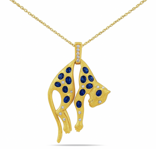 18K 2.87cttw Oval Blue Sapphire 0.29cttw White Diamonds Designer Panther Pendant
