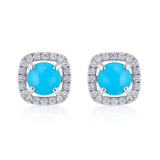 14K 1.00cttw Round Sleeping Beauty Turquoise 0.20cttw VS White Diamonds Stud Earrings