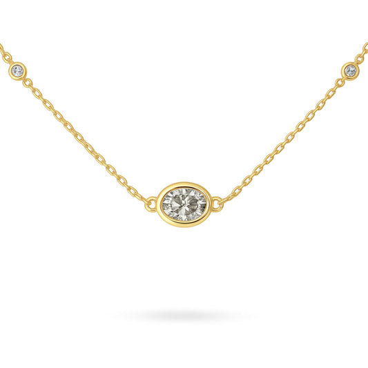 14K 0.40cttw Oval VS White Diamond Bezel Set Solitaire Necklace