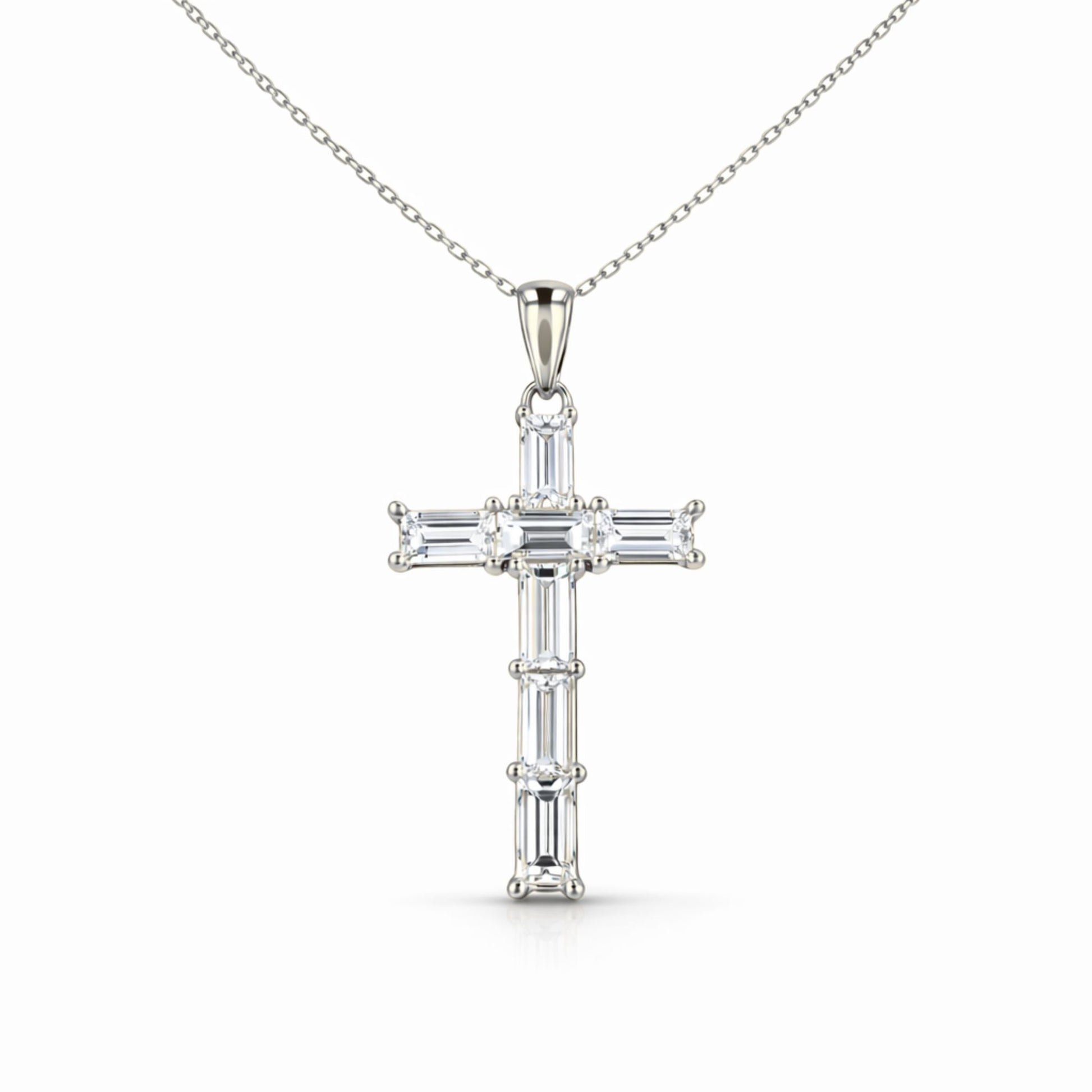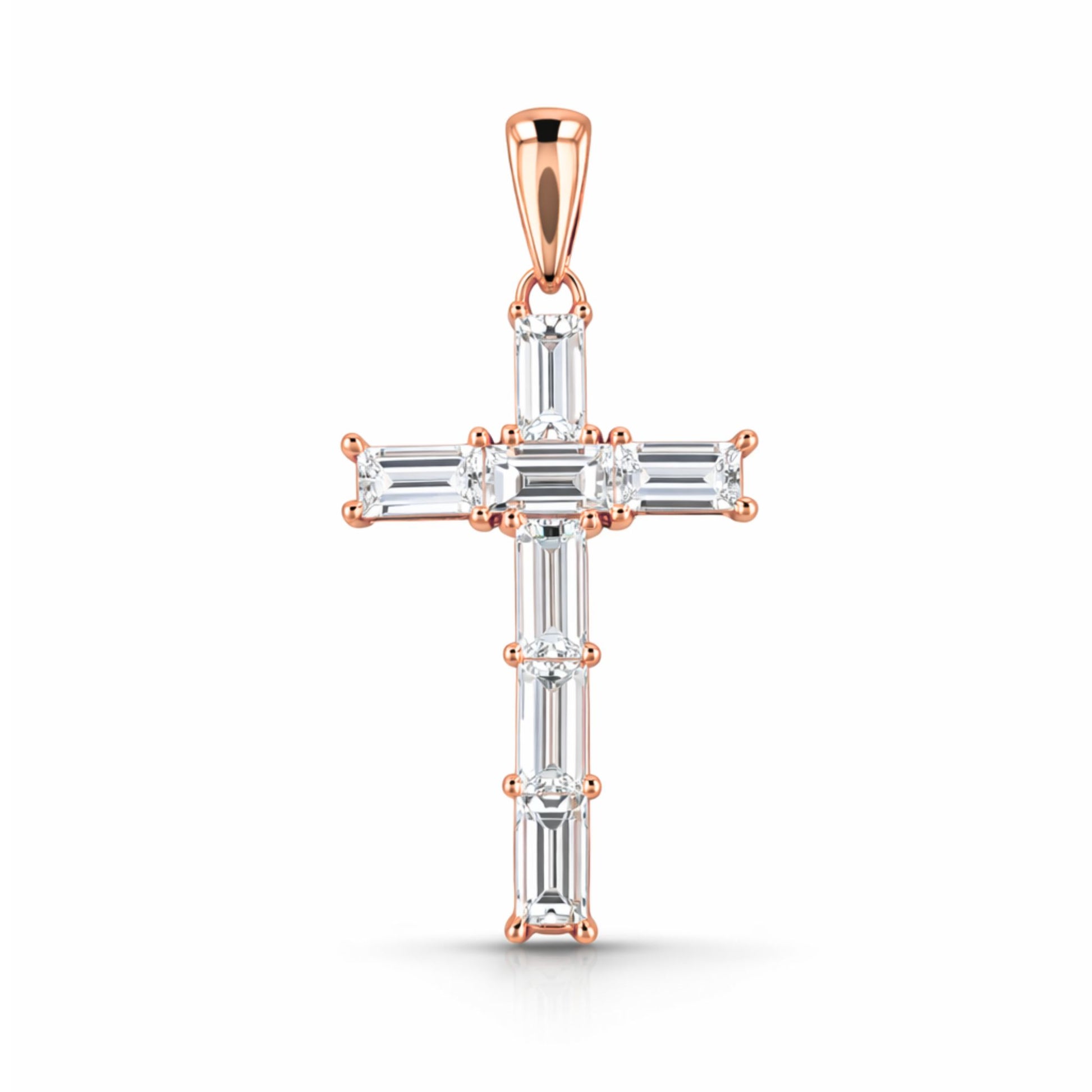 14K 1.10cttw Baguette VS White Diamond Cross Pendant
