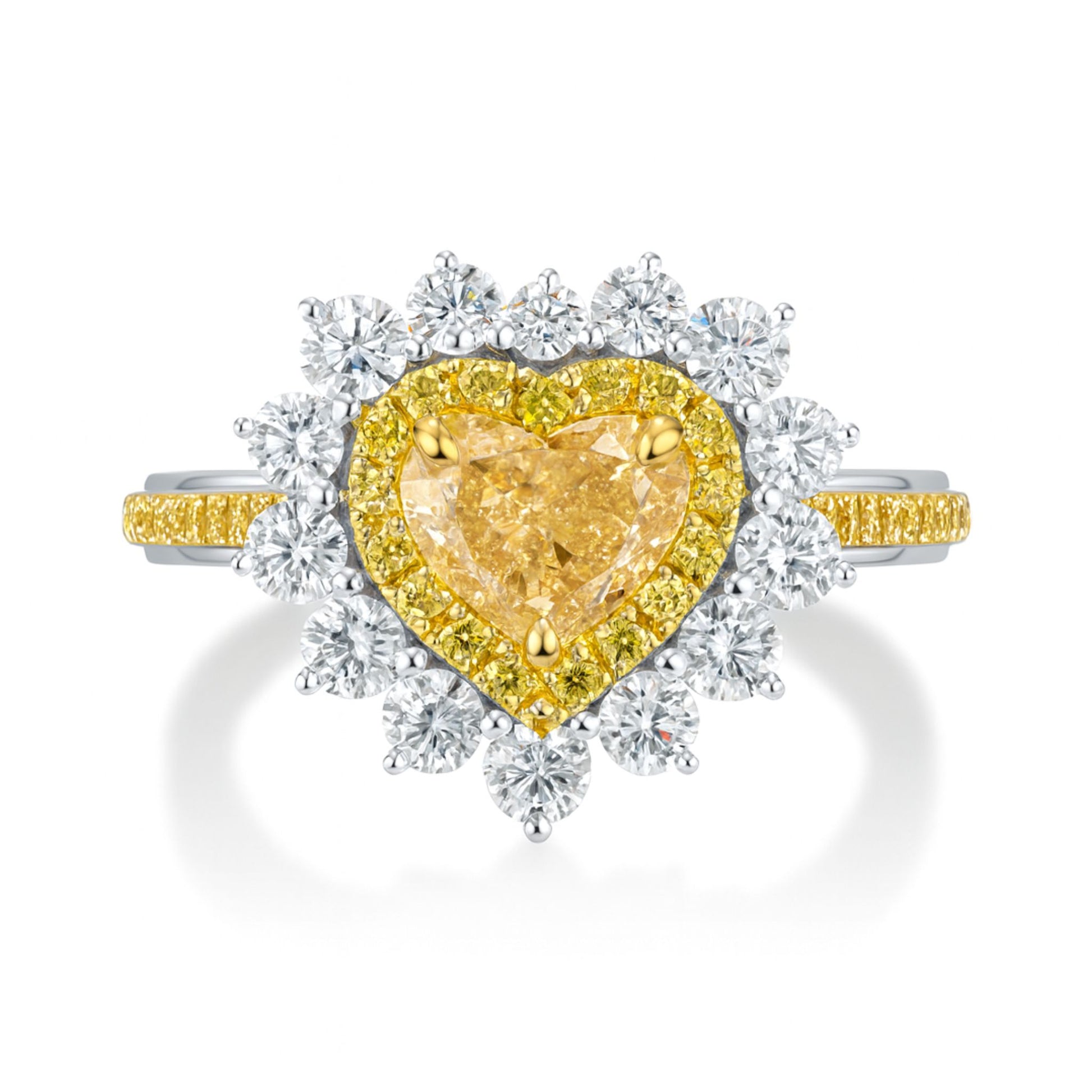 14K 1.00ct Heart Shape VS Yellow Diamond 1.22cttw VS Yellow & White Diamonds Ring