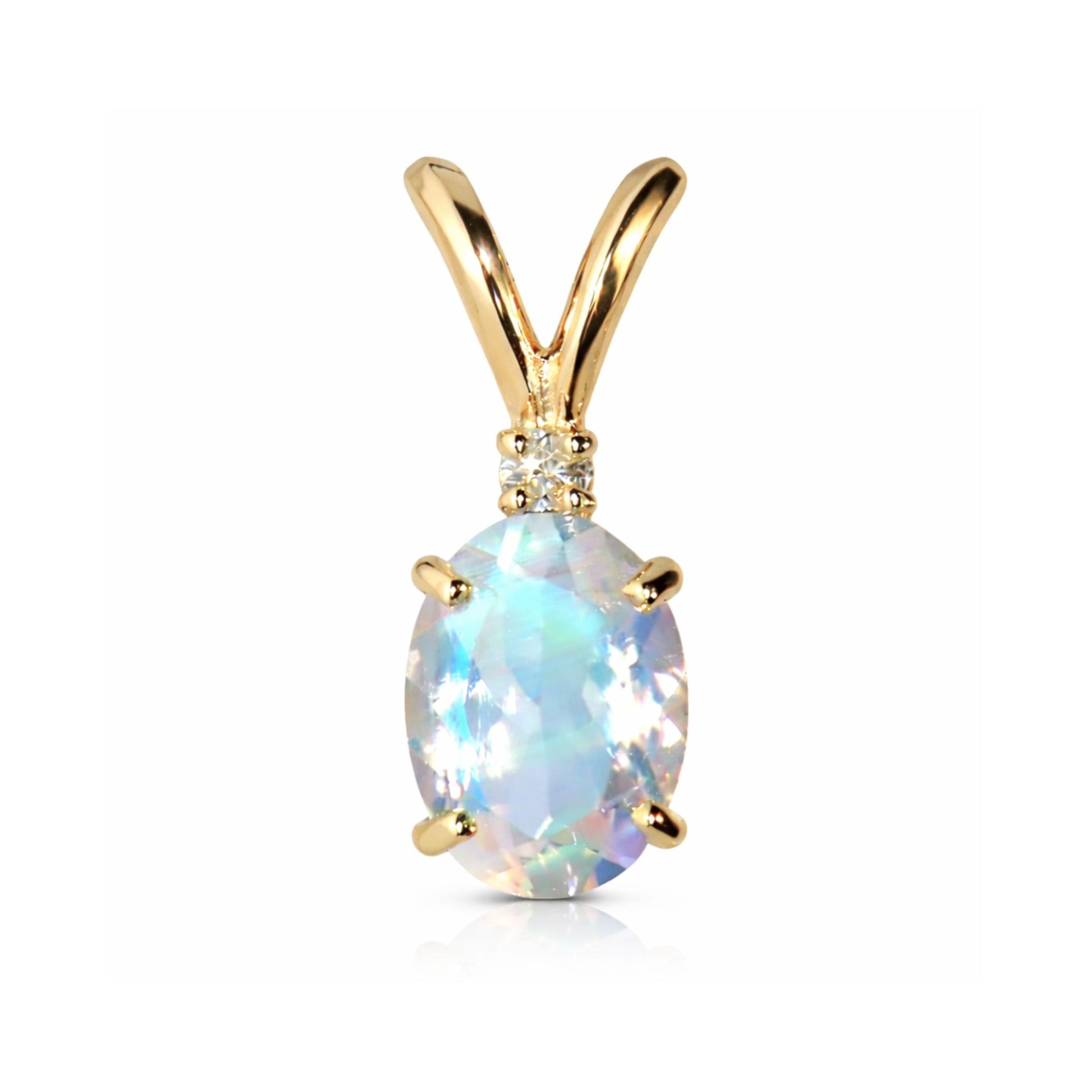 14K 1.00ct Oval Moonstone 0.01ct White Diamonds Solitaire Pendant