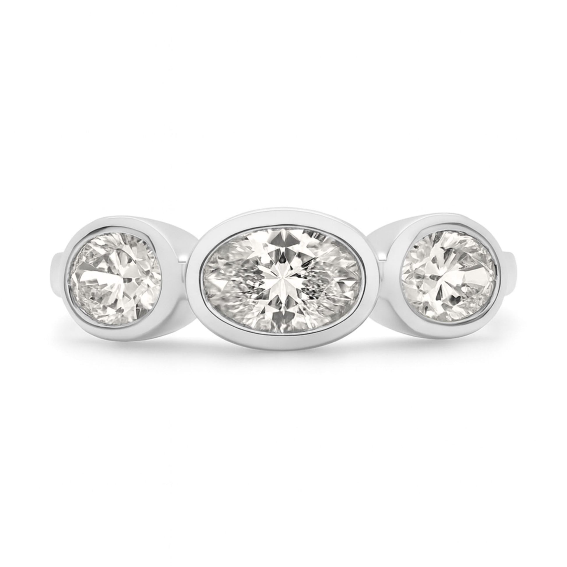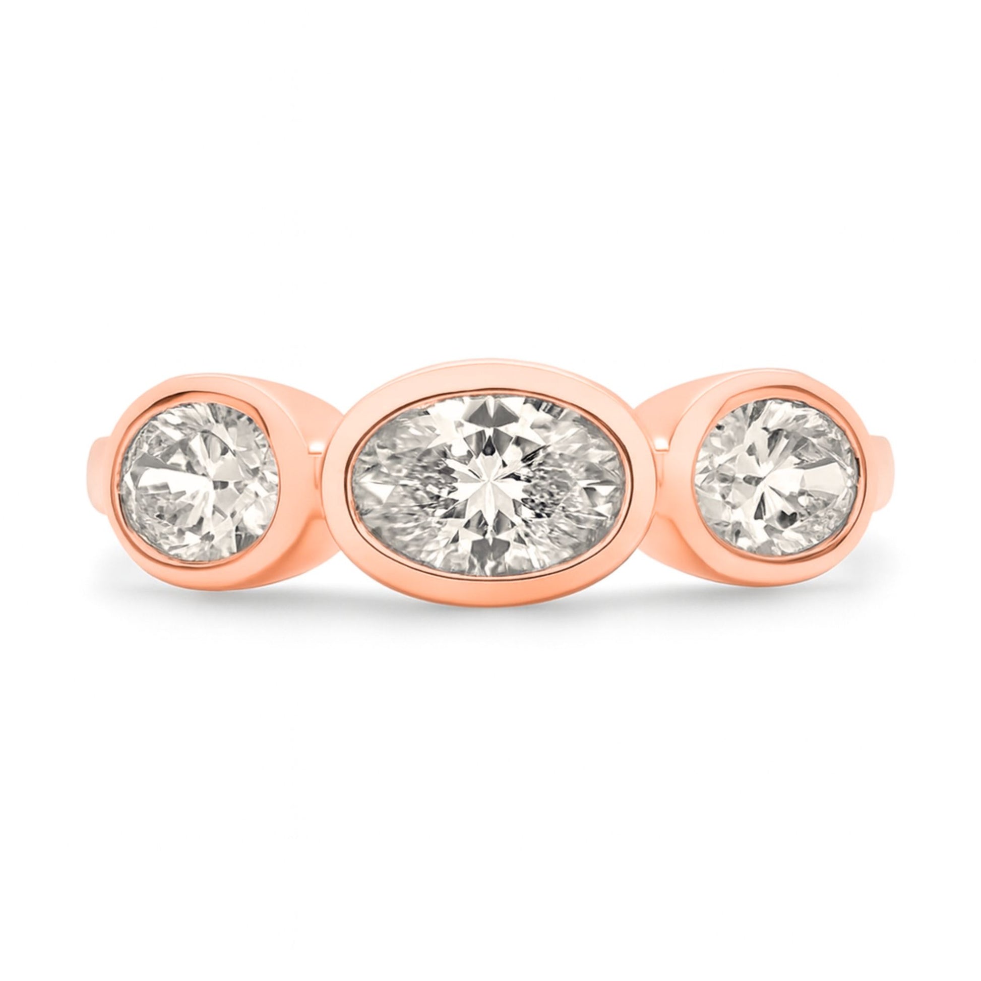14K 1.00cttw Oval VS White Diamond 3 Stone Band Ring