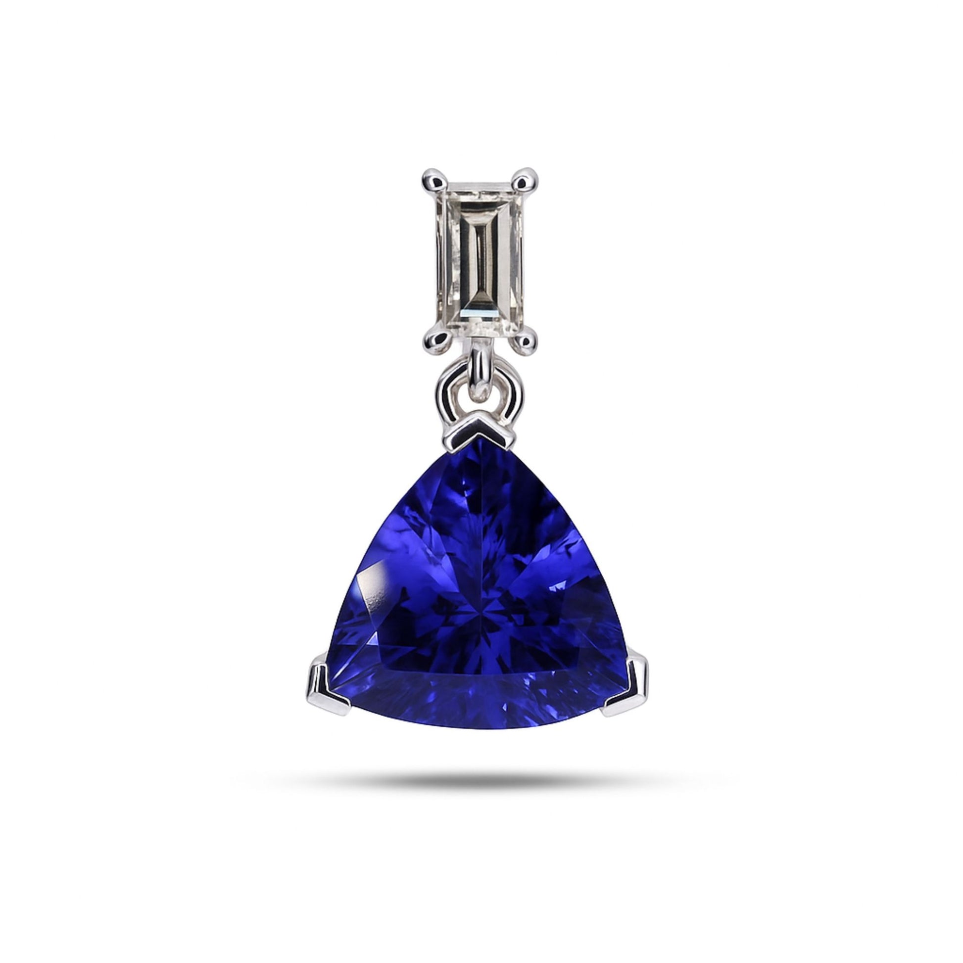 14K 1.54cttw Trilliant Blue Wing Tanzanite 0.14cttw Baguette VS White Diamond Pendant