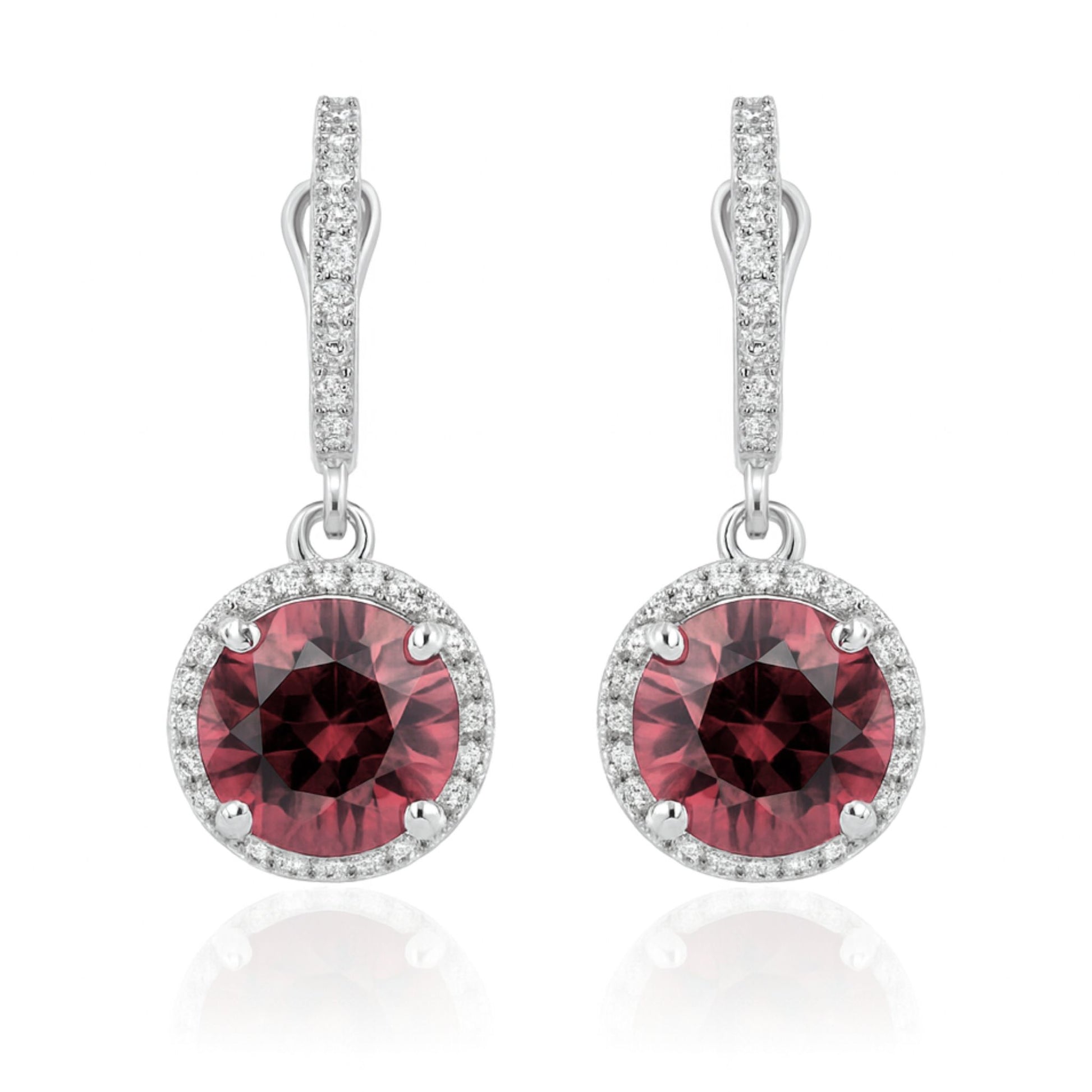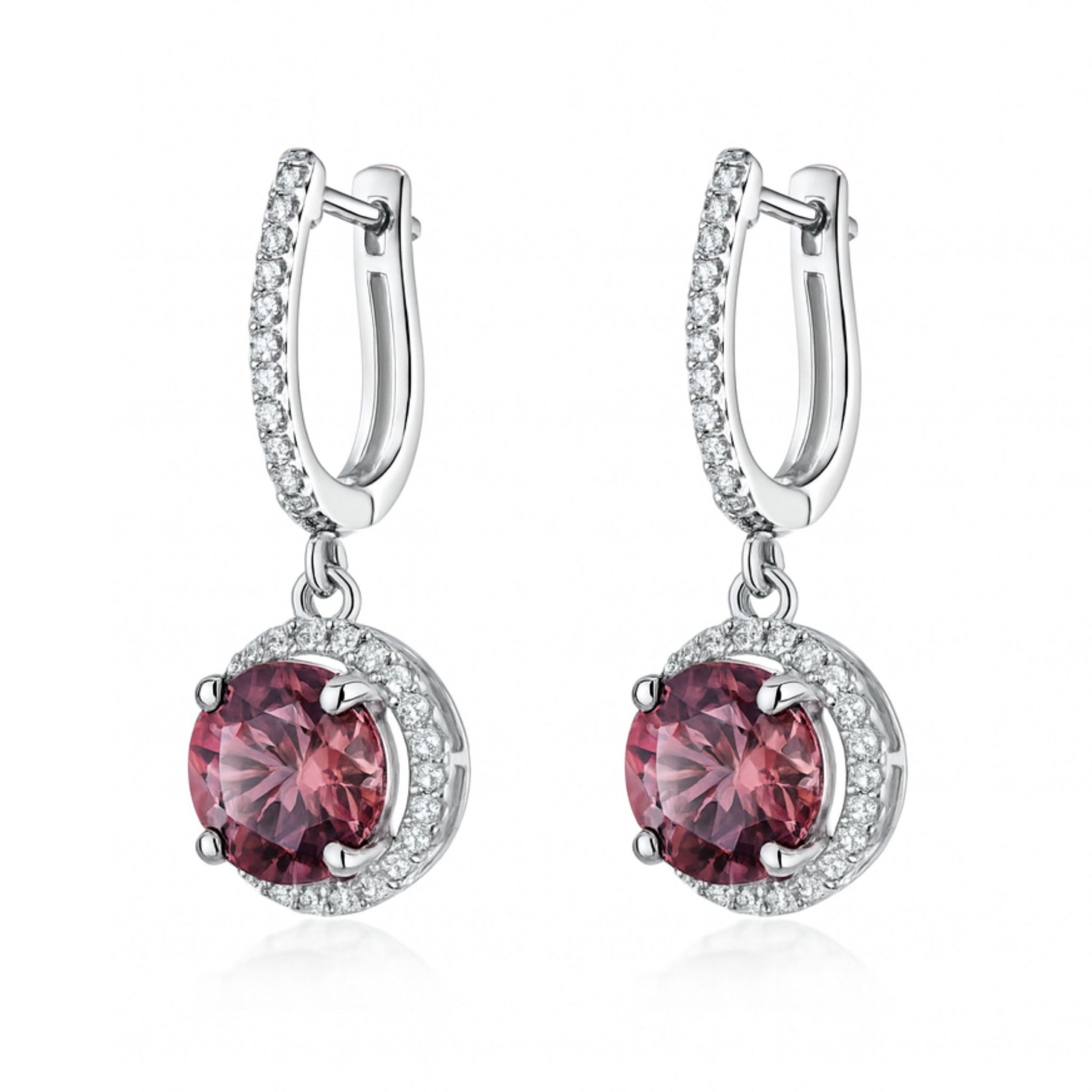 14K 12.52cttw Round Pink Zircon 0.72cttw VS White Diamonds Drop Earrings