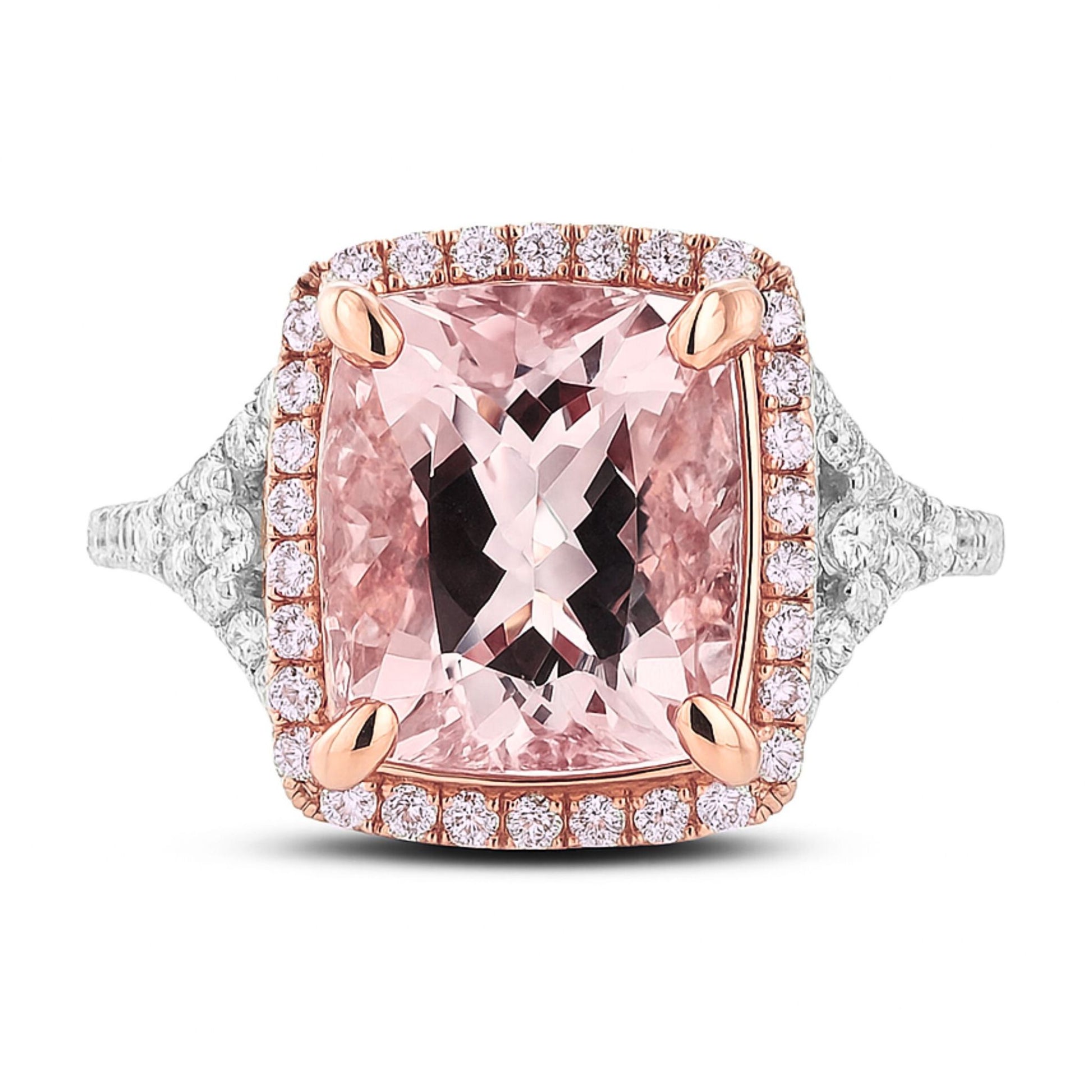 14K 3.28ct Cushion Pink Morganite 0.55cttw Pink & White Diamonds Ring