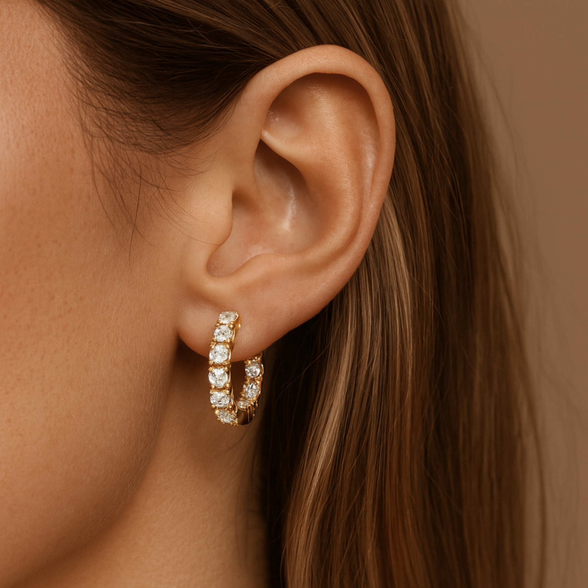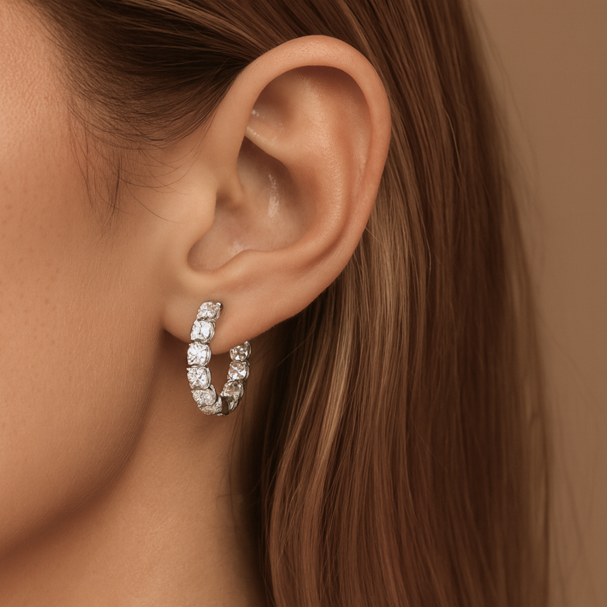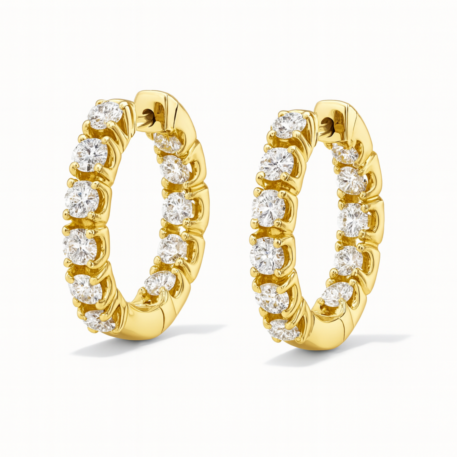 14K 3.36cttw Round VS White Diamonds 1" Inside Out Hoop Earrings