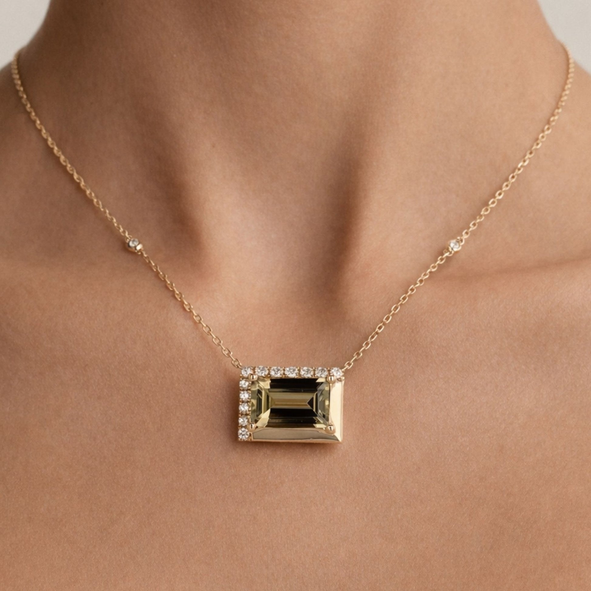 14K 4.27ct Baguette Color Change Diaspore 0.37cttw VS White Diamonds Necklace
