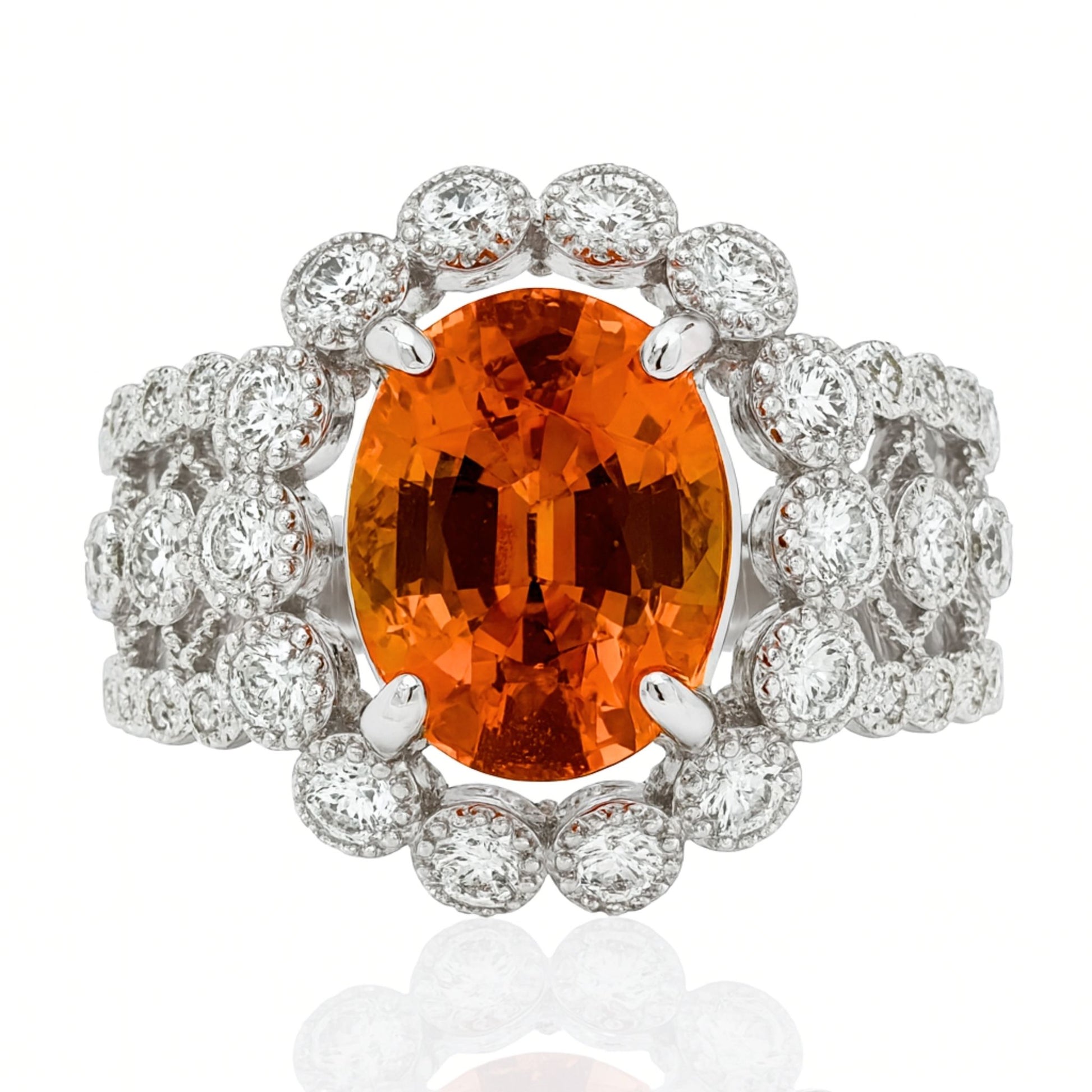 14K 4.47ct Oval Private Collection Mandarin Garnet 1.09cttw VS White Diamonds Ring