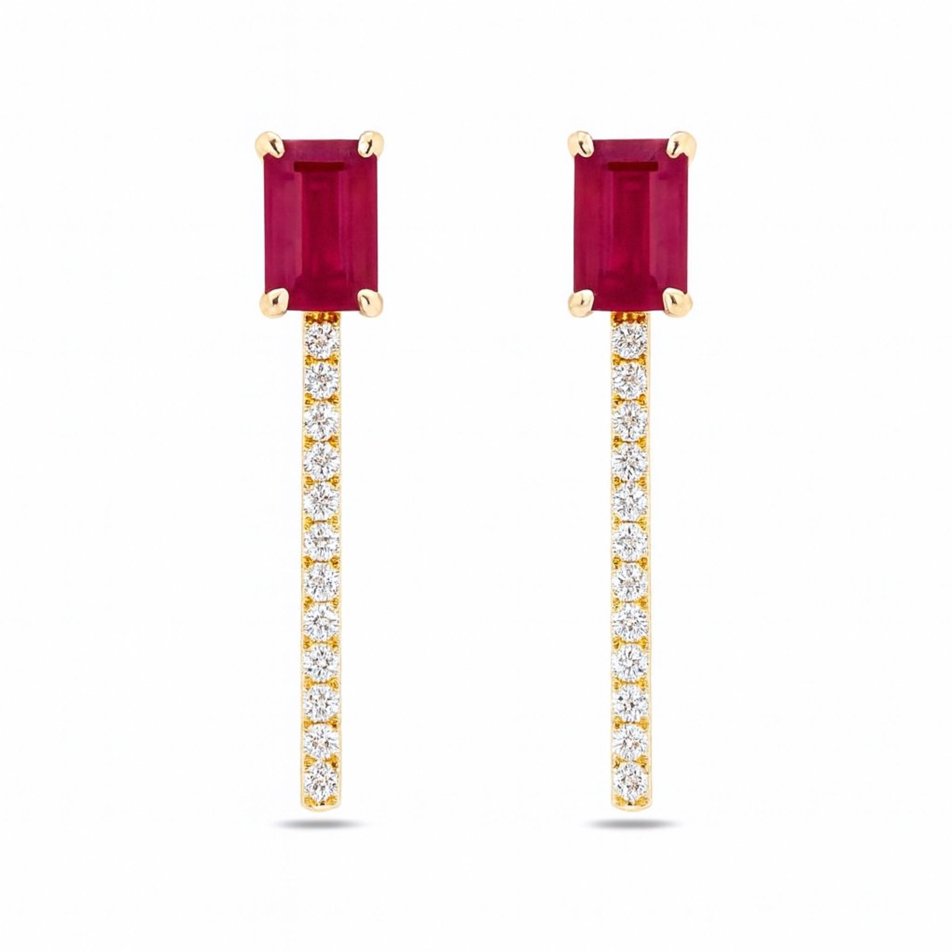 14K 1.16cttw Emerald Cut Burma Ruby 0.15cttw White Diamonds Earrings