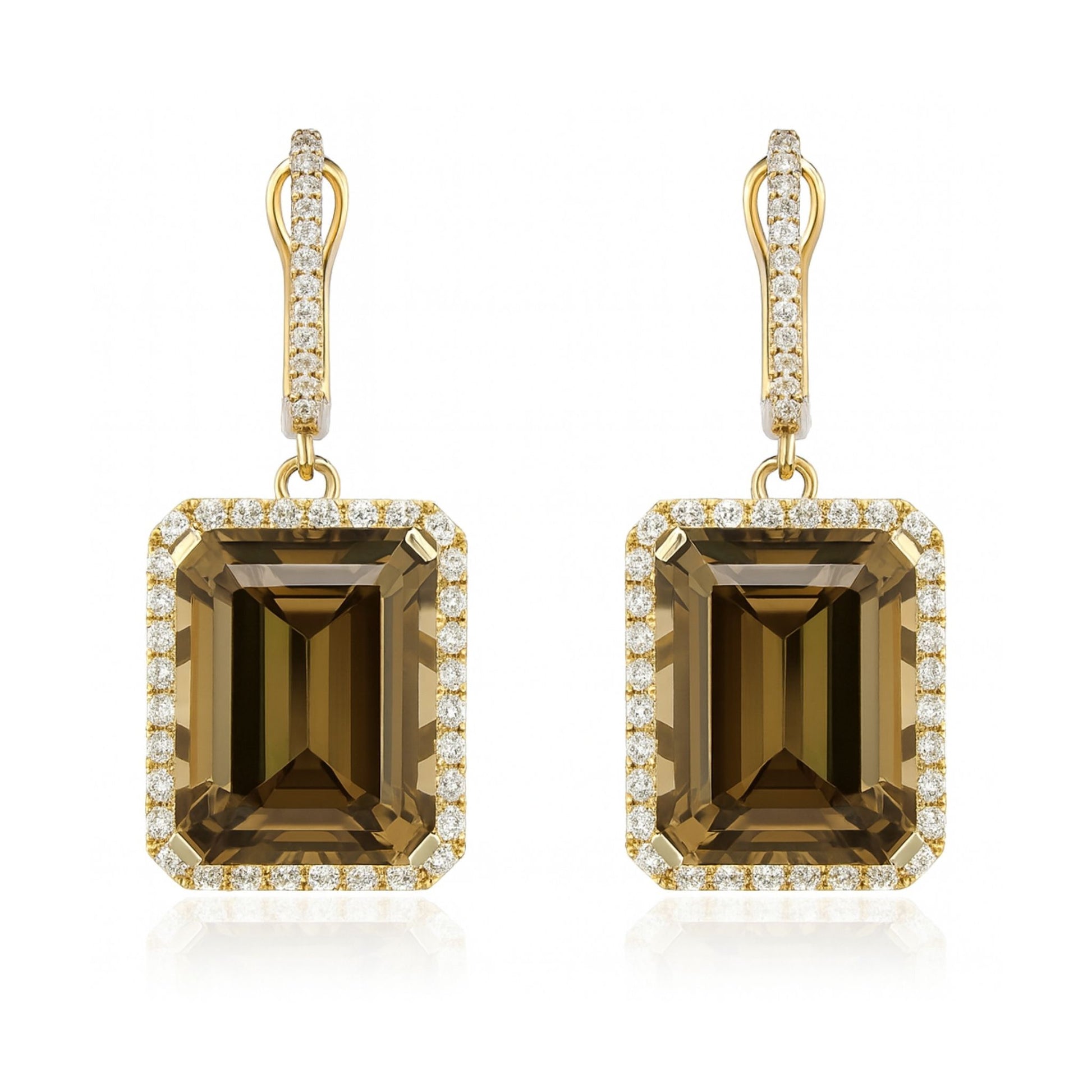 14K 25.12cttw Emerald Cut Color Change Diaspore 0.94cttw VS White Diamonds Drop Earrings