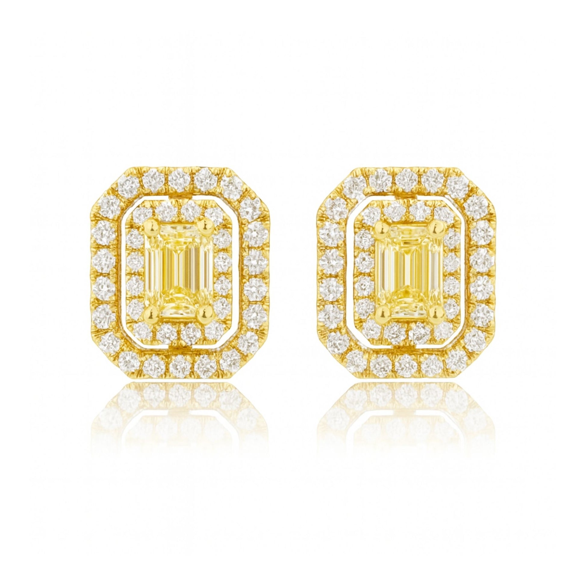 14K 0.85cttw Emerald Cut VS Yellow Diamond 0.34cttw VS White Diamonds Stud Earrings