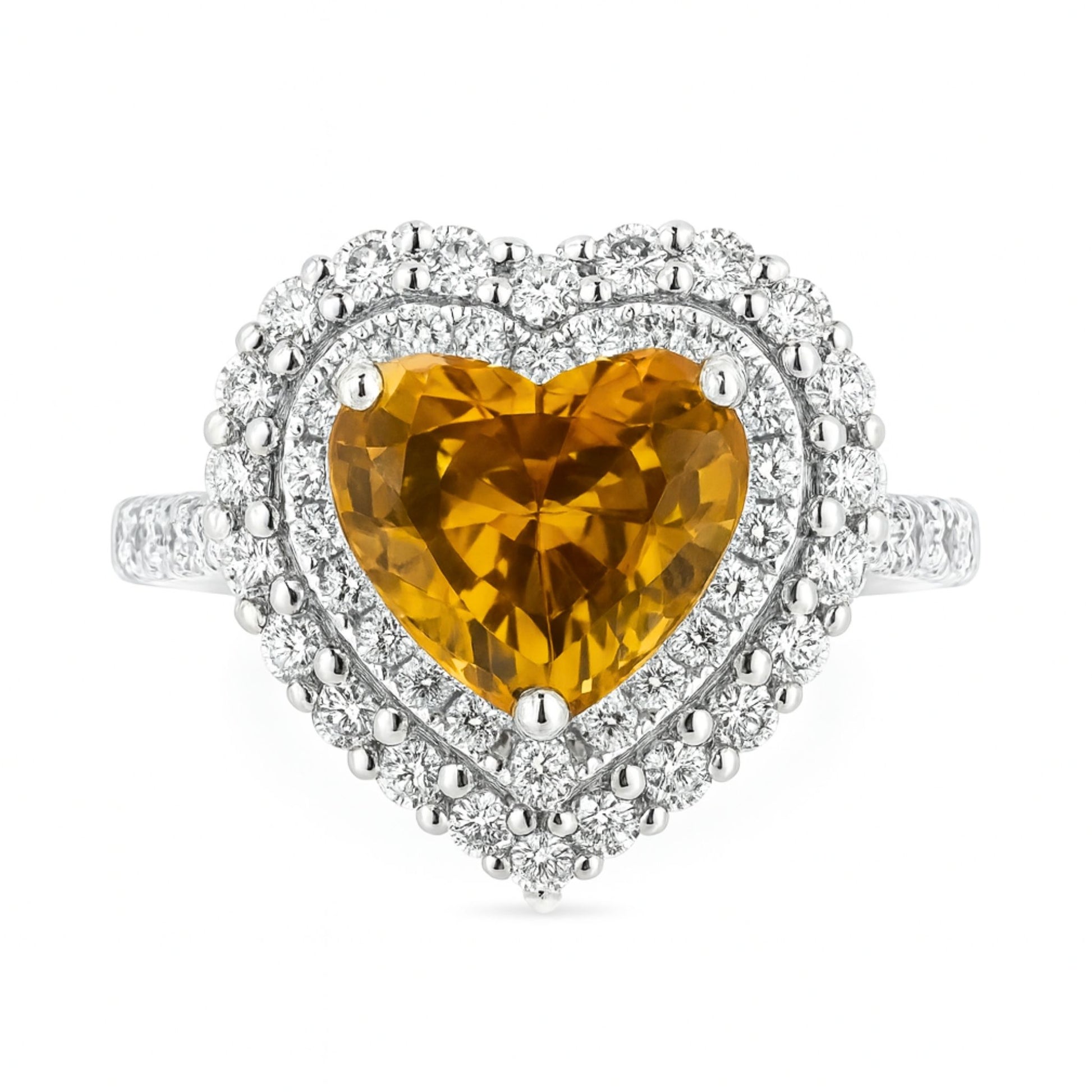 14K 4.82ct Heart Shape Golden Zircon 1.35cttw VS White Diamonds Ring