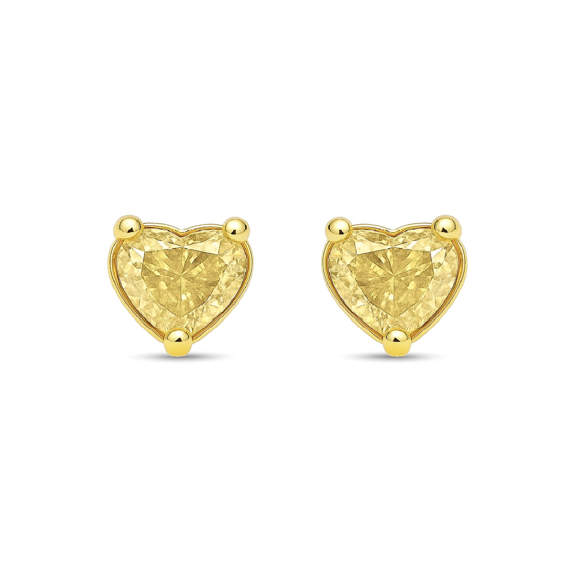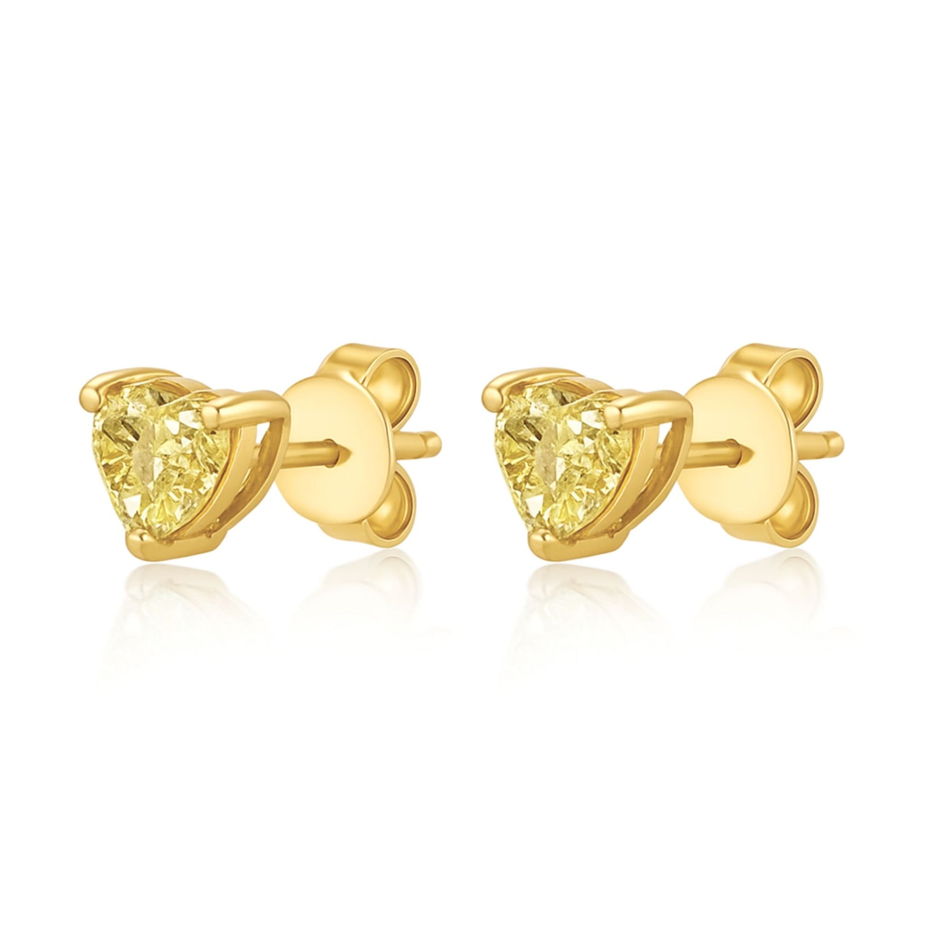 14K 0.80cttw Heart Shape VS Yellow Diamond Solitaire Stud Earrings