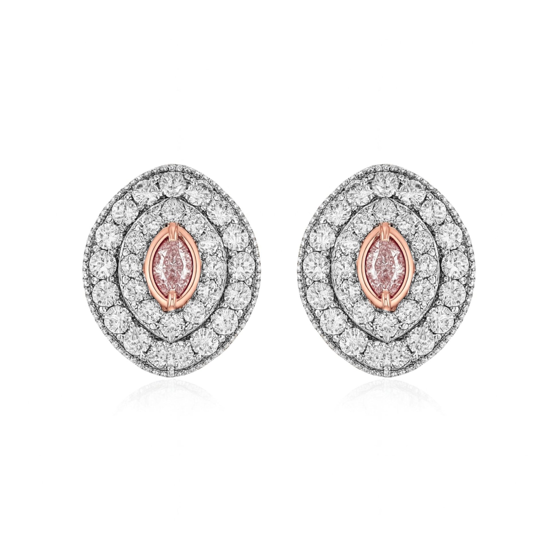 14K 0.19cttw Marquise Pink Diamond 0.75cttw VS White Diamonds Stud Earrings