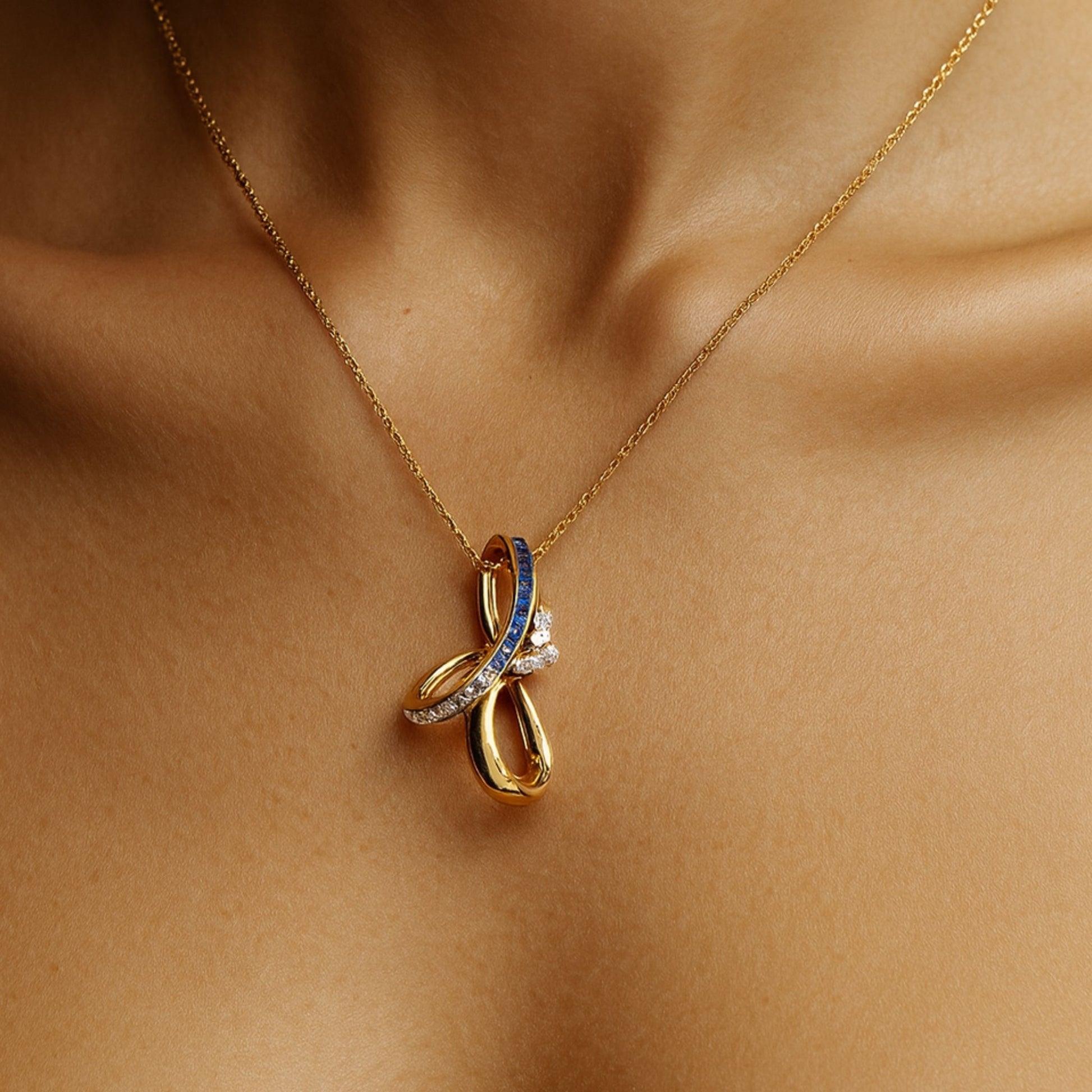 18K 1.14cttw Asscher Cut Multi-Color Sapphire 0.22cttw White Diamonds Necklace