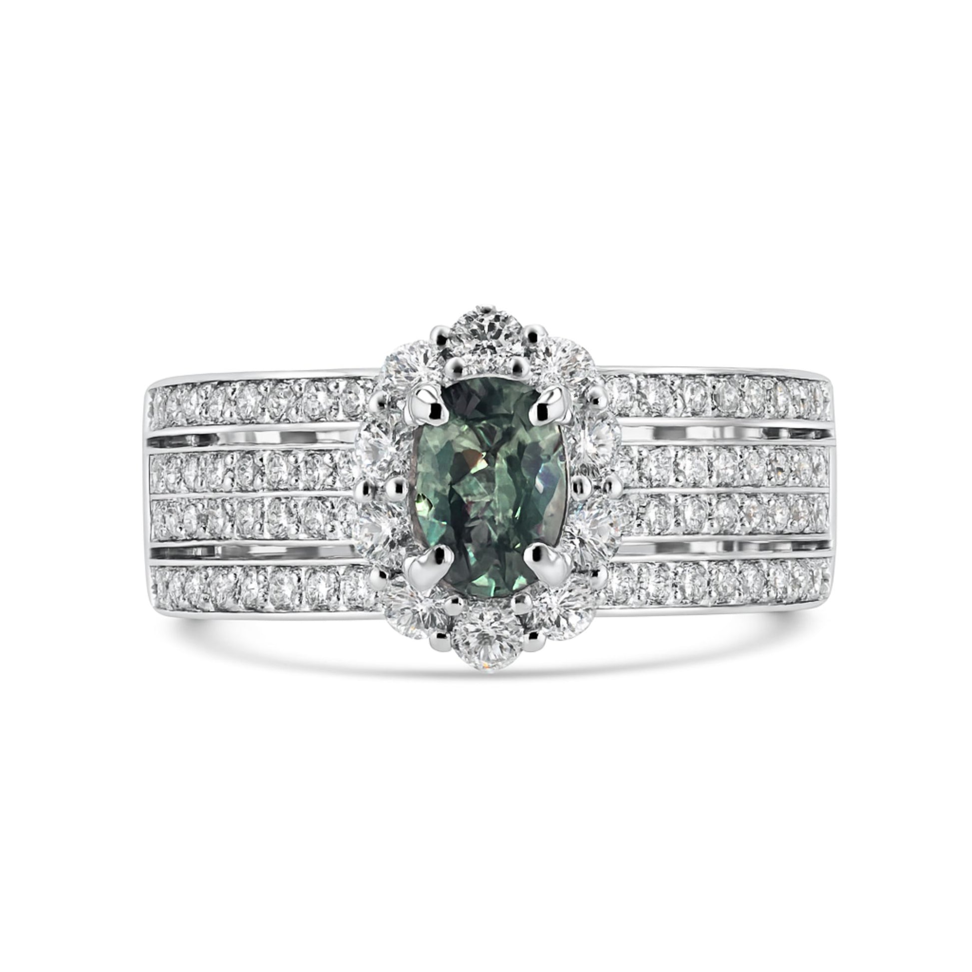 14K 0.51ct Oval Alexandrite 0.82cttw White Diamonds Ring