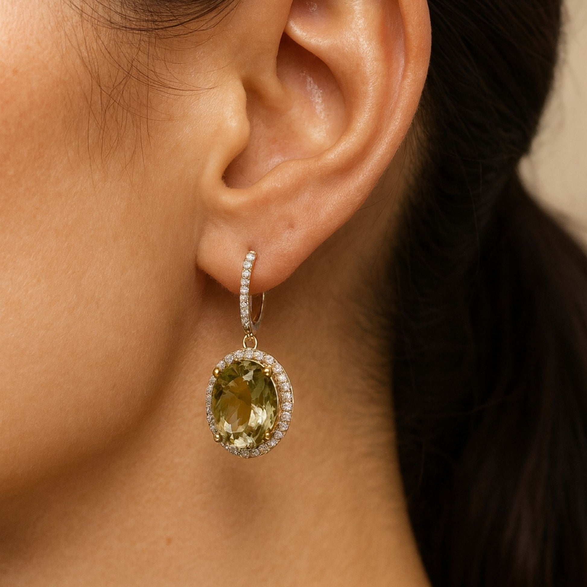 14K 20.71cttw Oval Color Change Diaspore 1.00cttw VS White Diamonds Drop Earrings