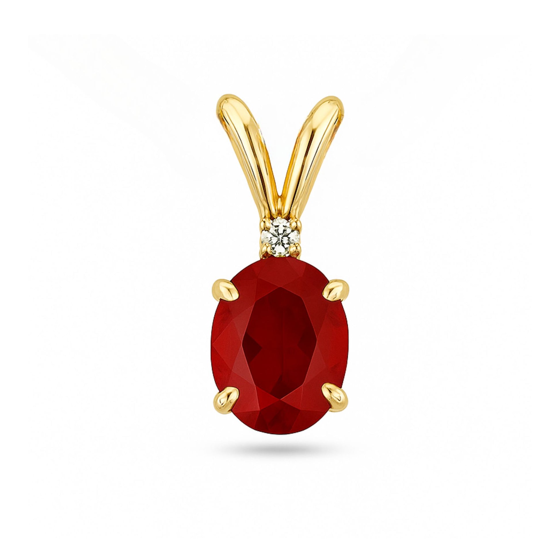 14K 0.74ct Oval Fire Opal 0.01ct White Diamonds Solitaire Pendant