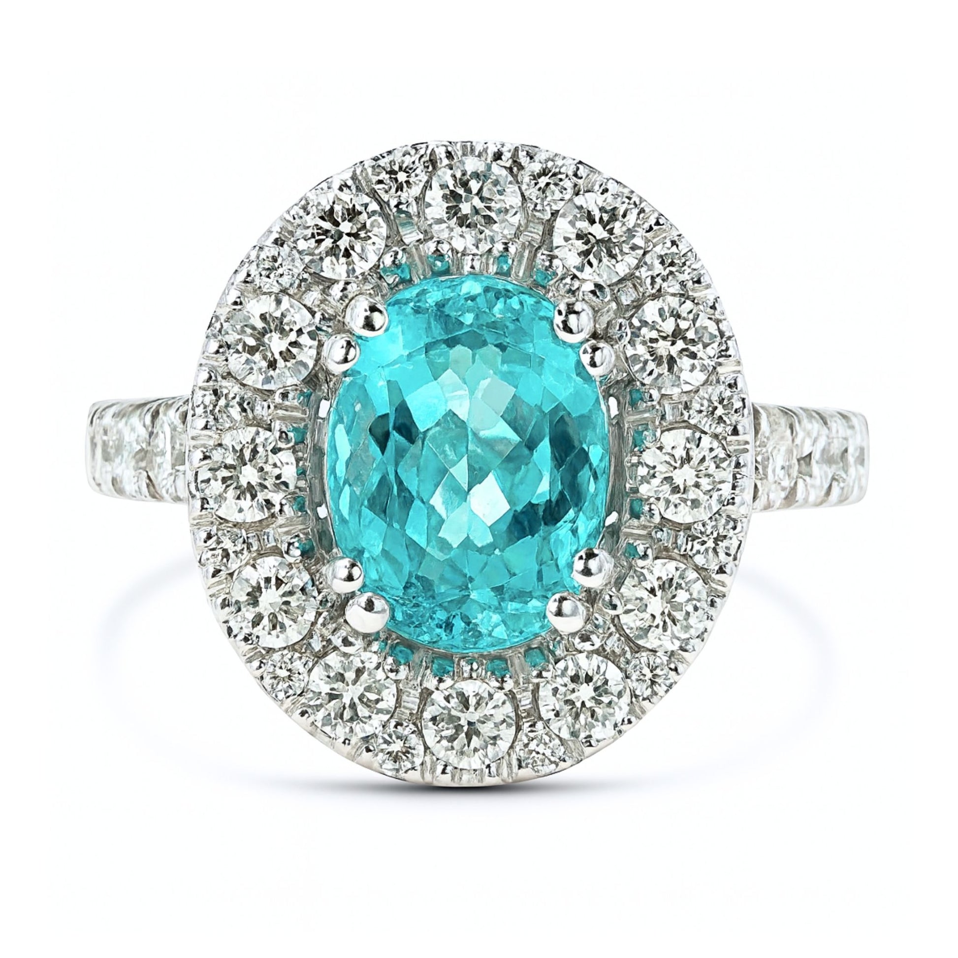 14K 1.66ct Oval Paraiba 1.45cttw VS White Diamonds Ring