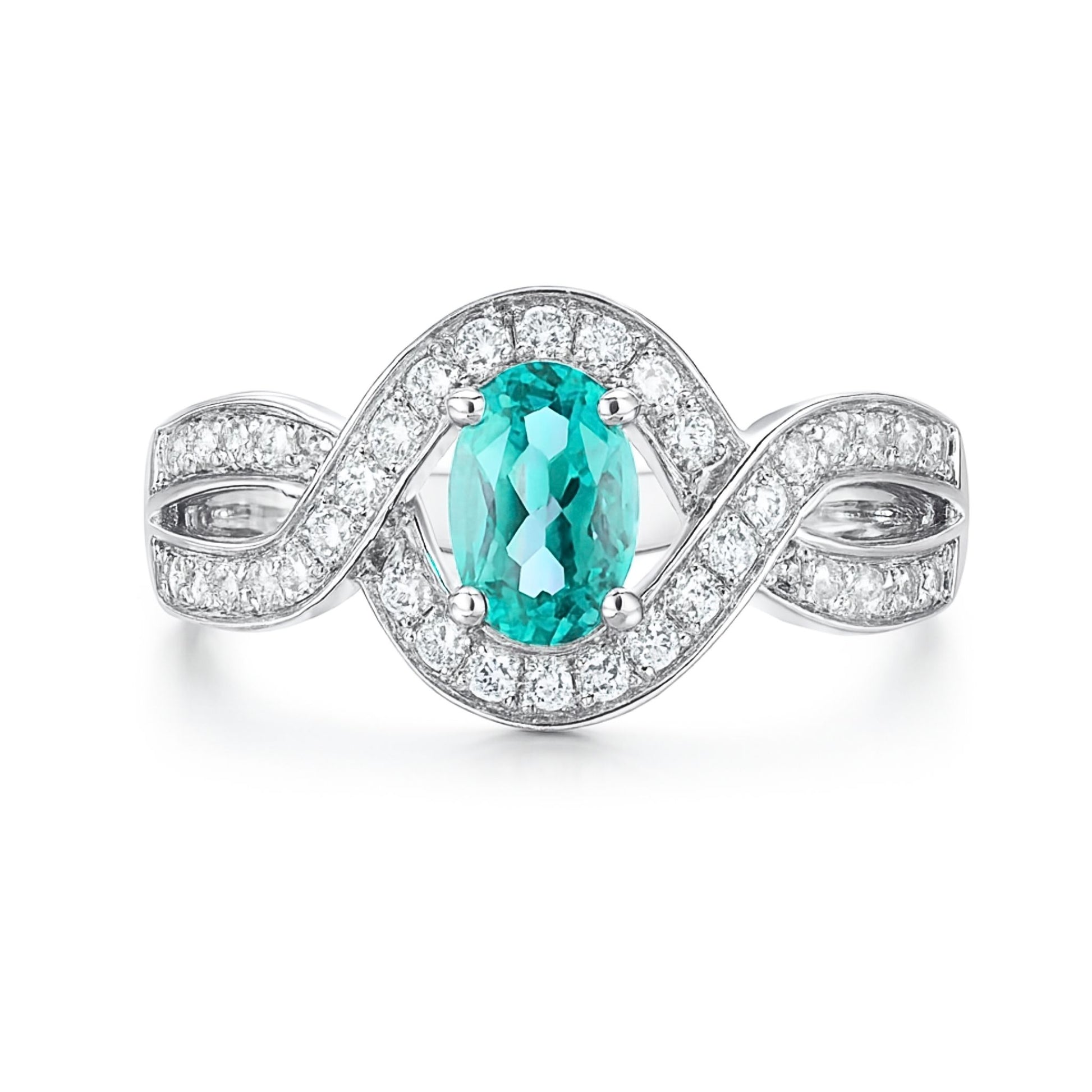 14K 0.45ct Oval Paraiba 0.34cttw White Diamonds Ring