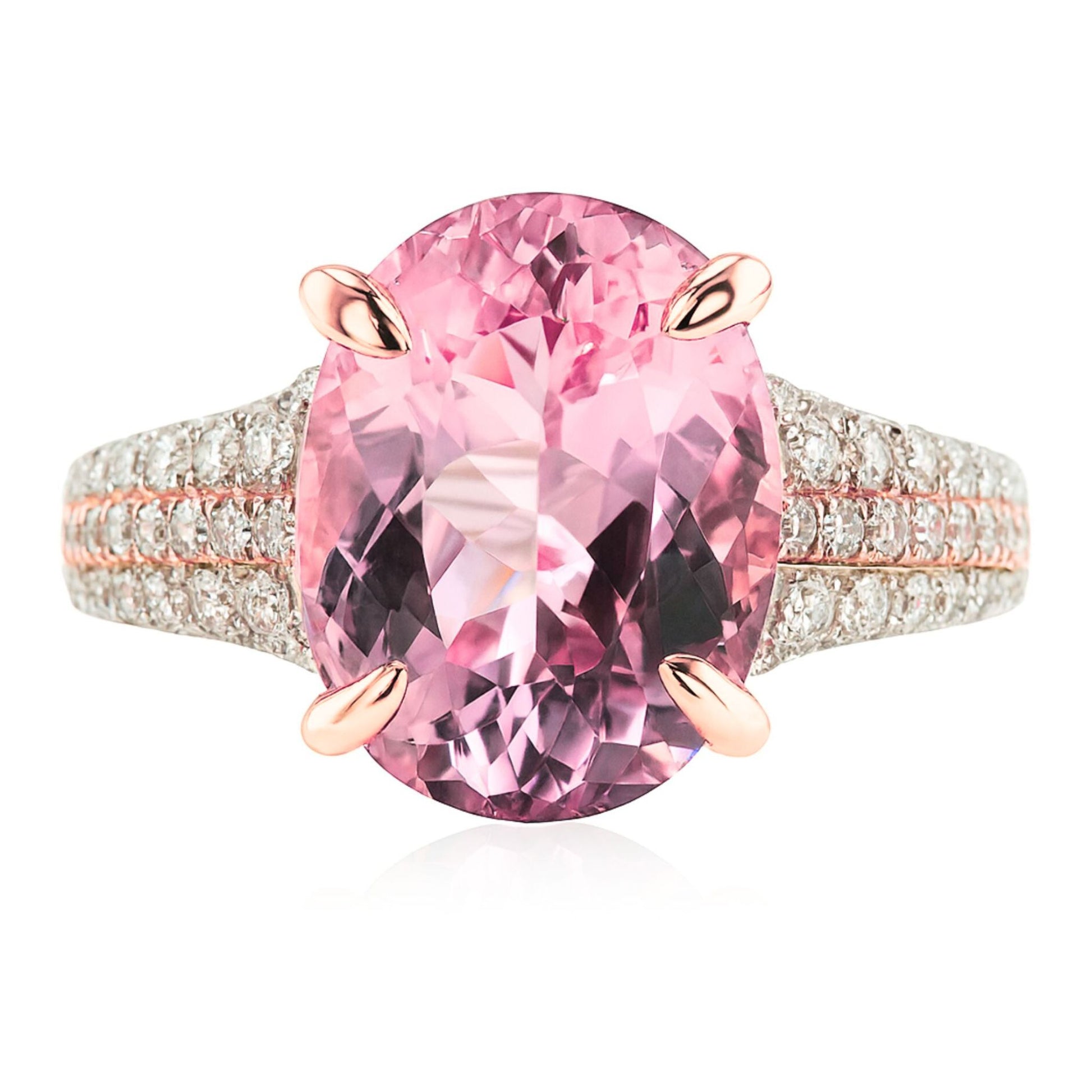 14K 5.10ct Oval Pink Tourmaline 0.58cttw Pink & White Diamonds Ring