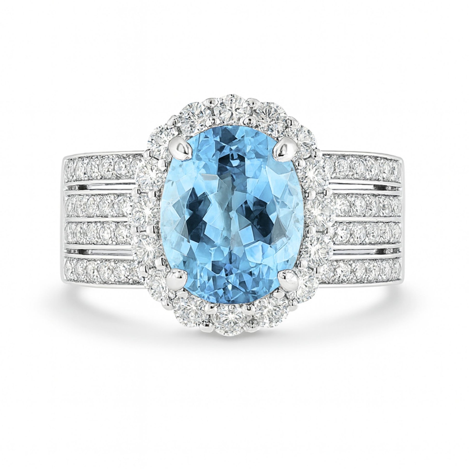 14K 2.53ct Oval Santa Maria Aquamarine 1.22cttw VS White Diamonds Ring