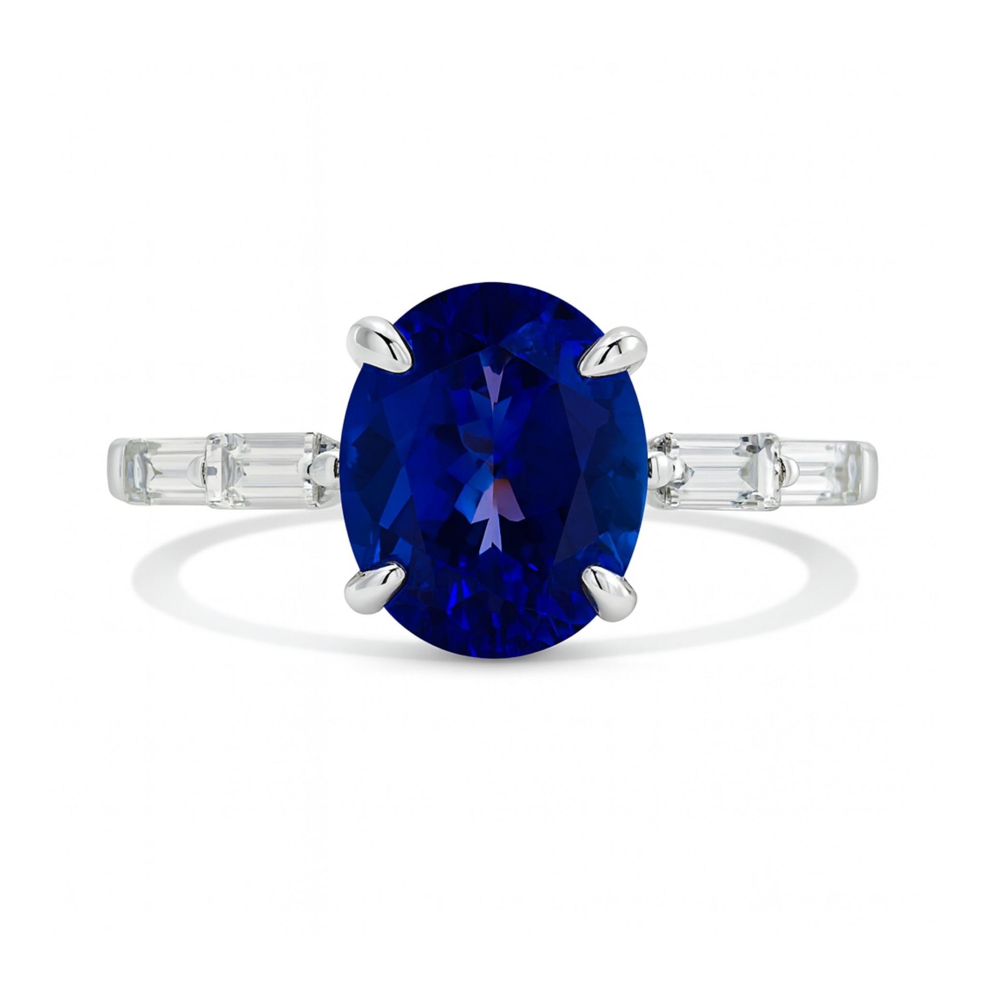 14K 2.70ct Oval Blue Wing Tanzanite 0.37cttw Baguette VS White Diamond Ring