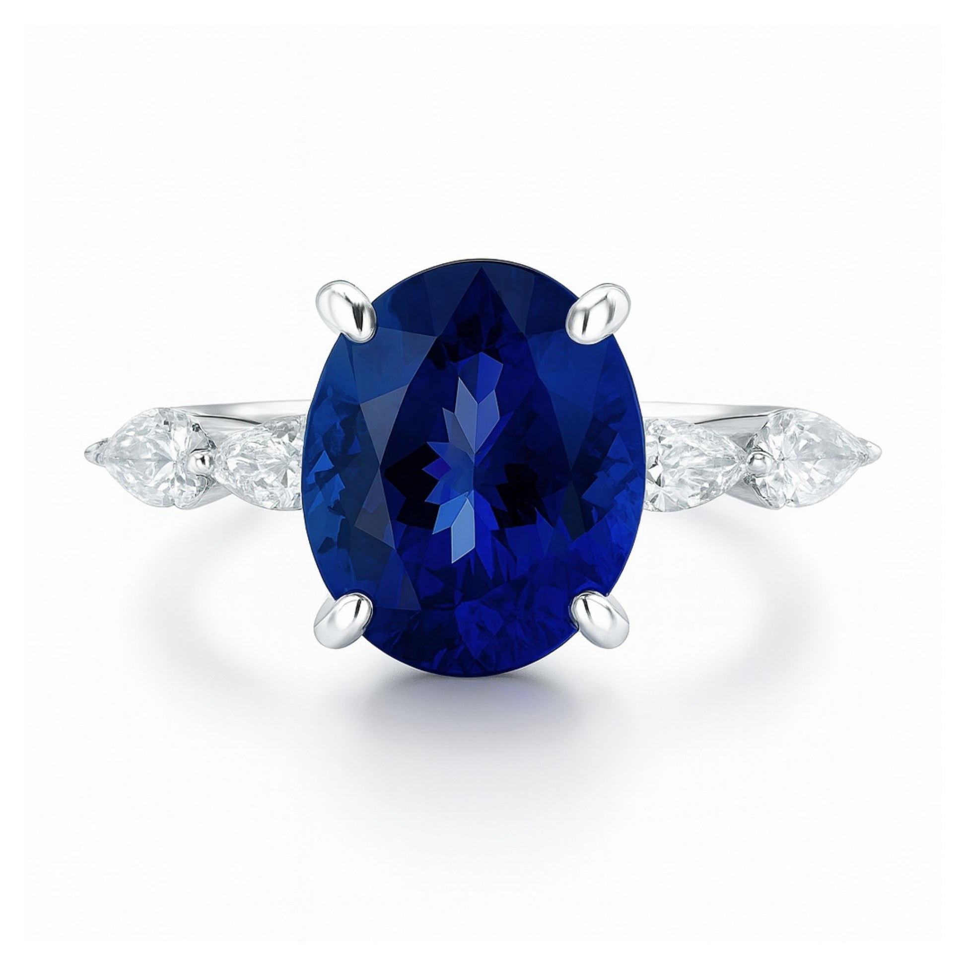 14K 5.09ct Oval Blue Wing Tanzanite 0.47cttw Pear Shape VS White Diamond Ring