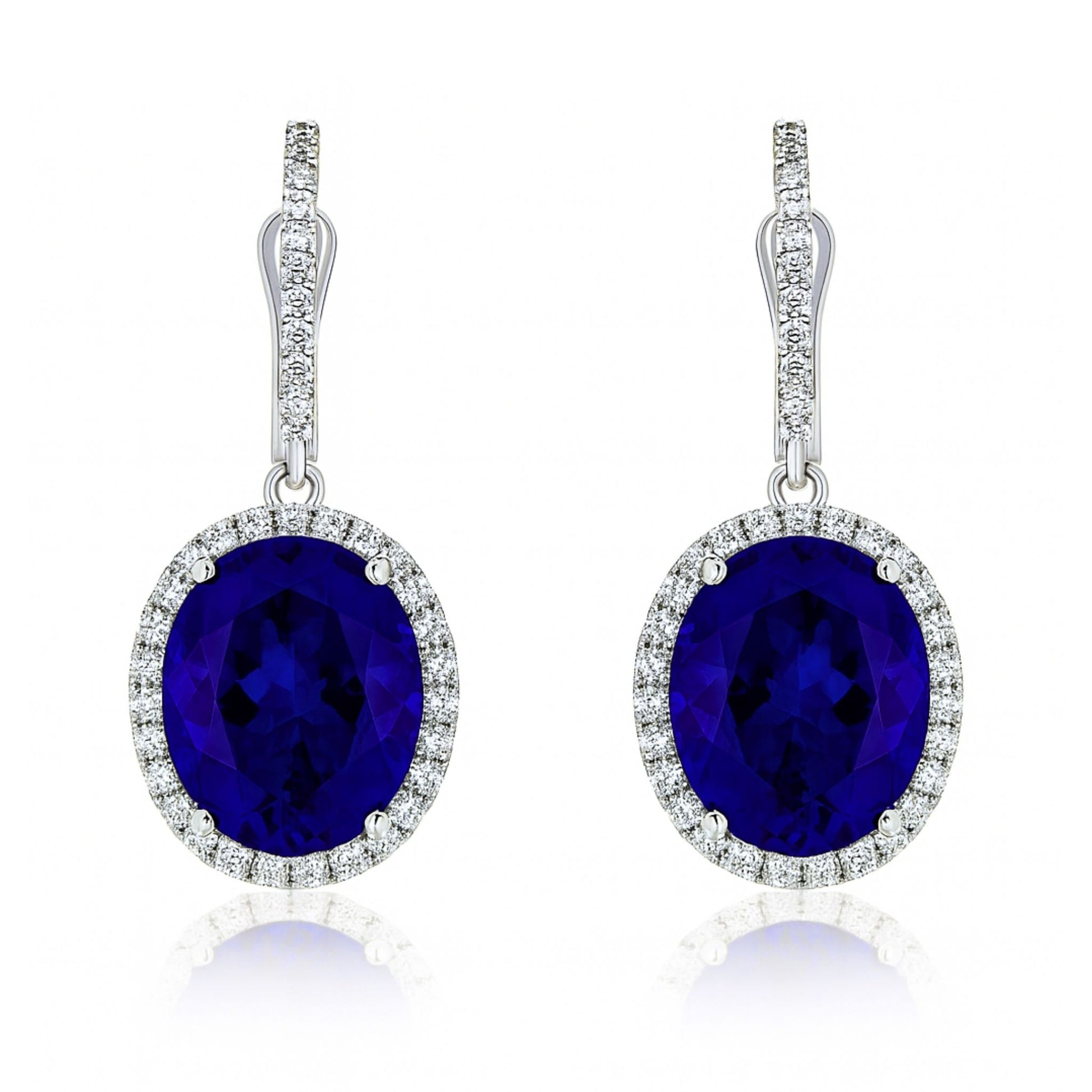 14K 17.44cttw Oval Blue Wing Tanzanite 1.00cttw White Diamonds Drop Earrings