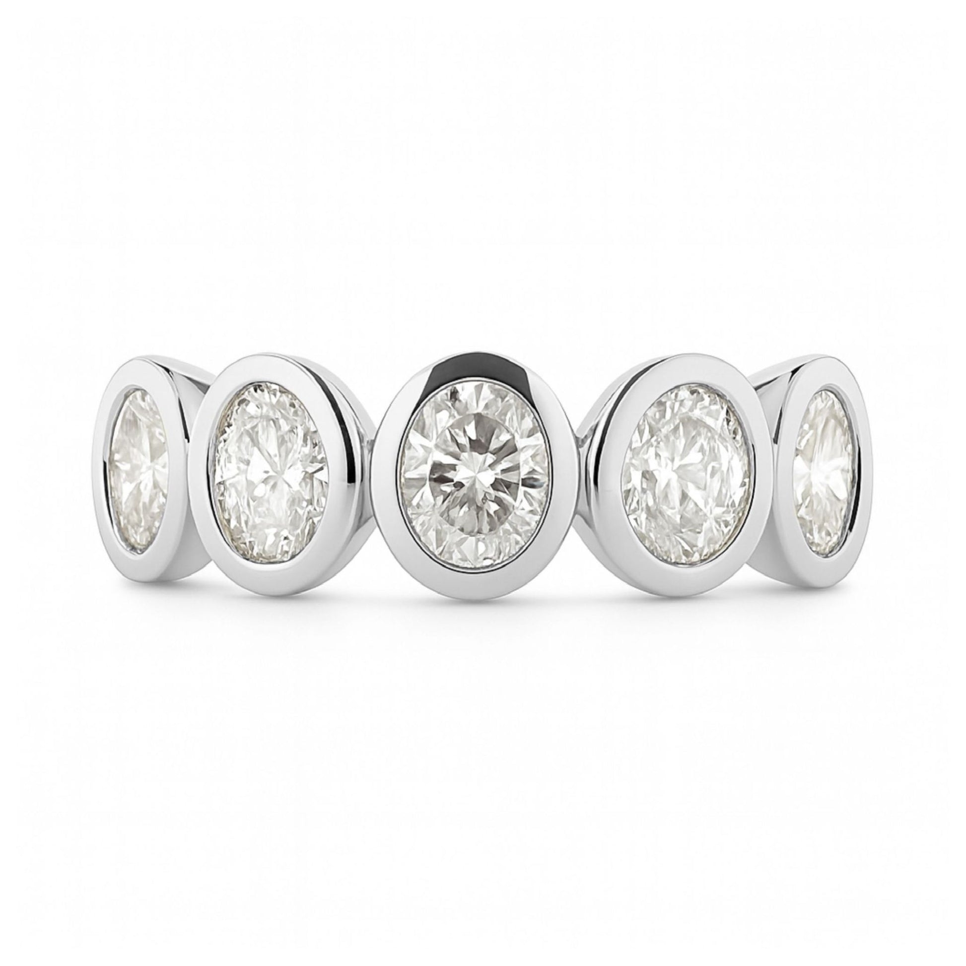 14K 1.20cttw Oval VS White Diamond Bezel Set 5 Stone Band Ring
