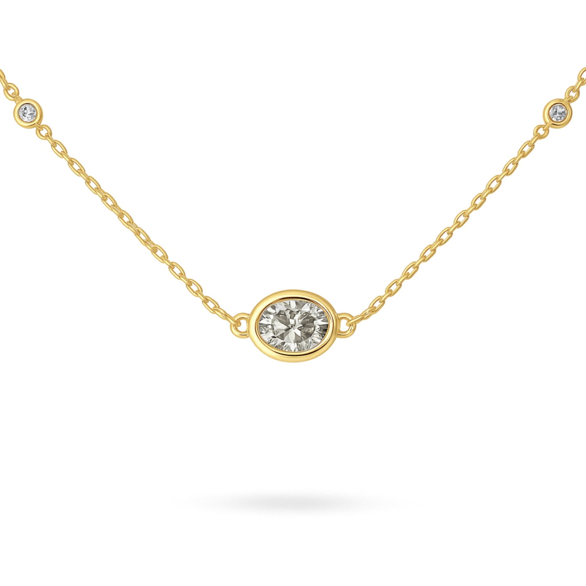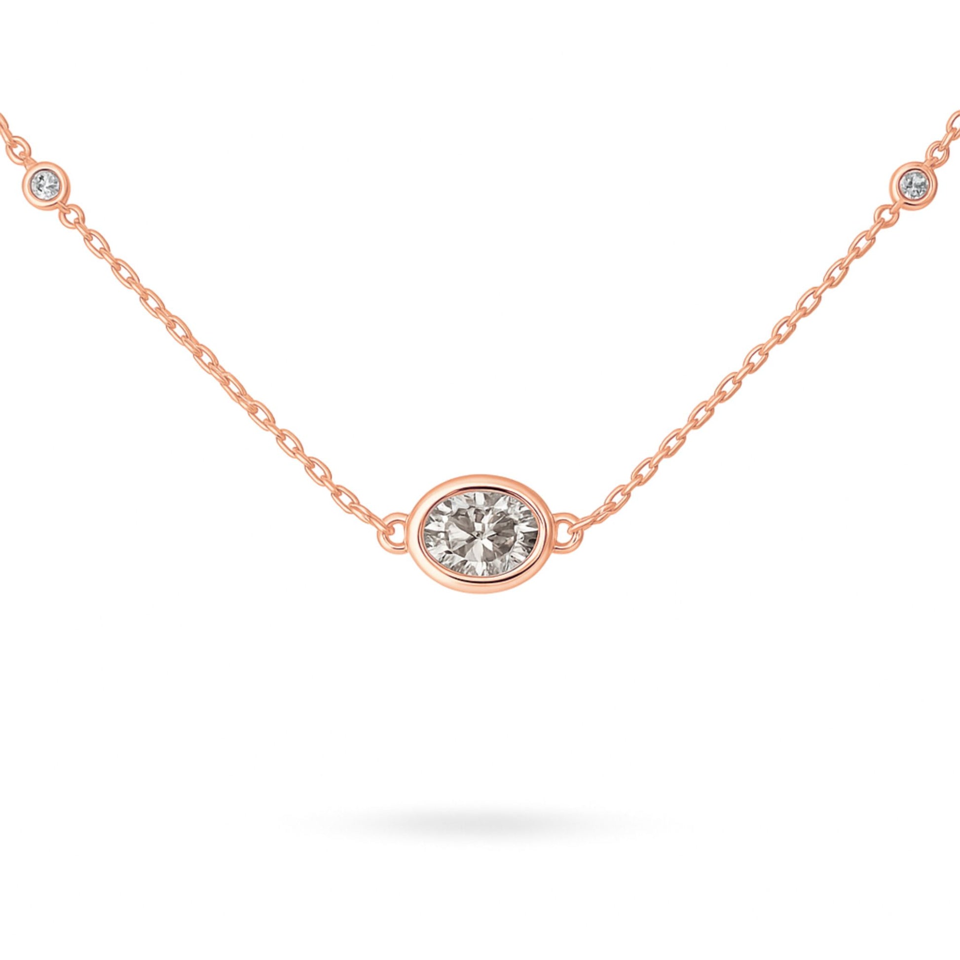 14K 0.40cttw Oval VS White Diamond Bezel Set Solitaire Necklace