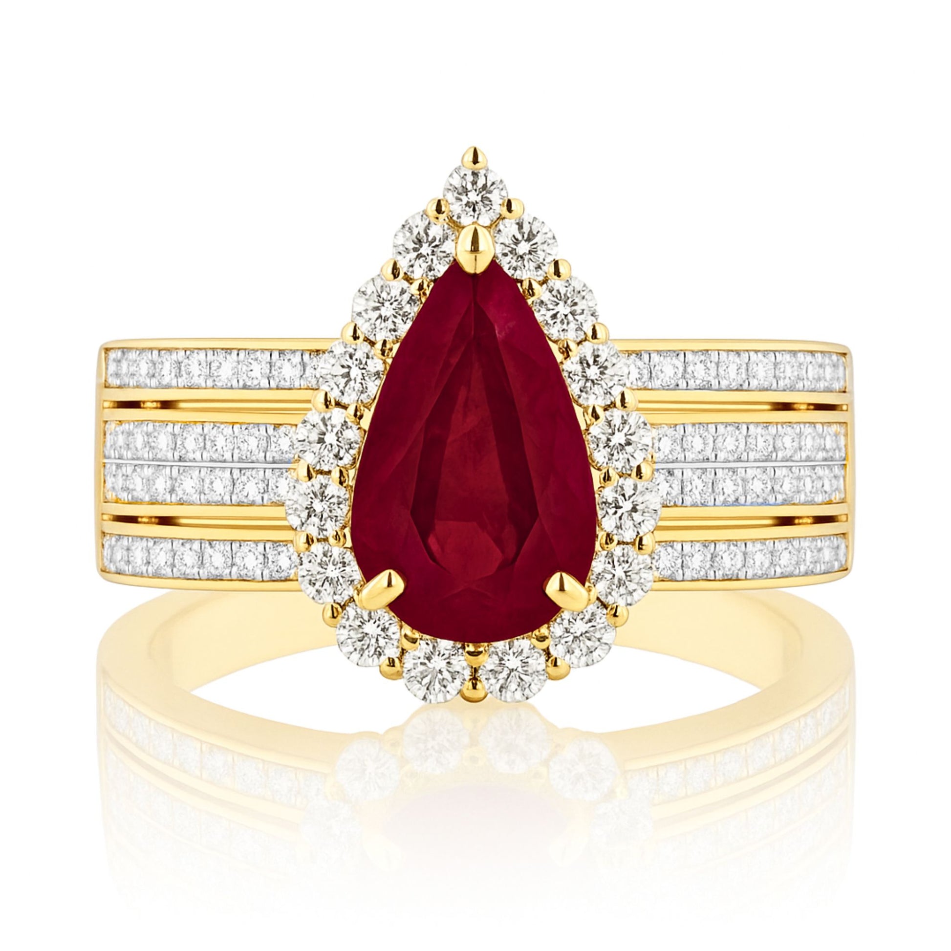 14K 2.57ct Pear Shape Burma Ruby 0.94cttw VS White Diamonds Ring