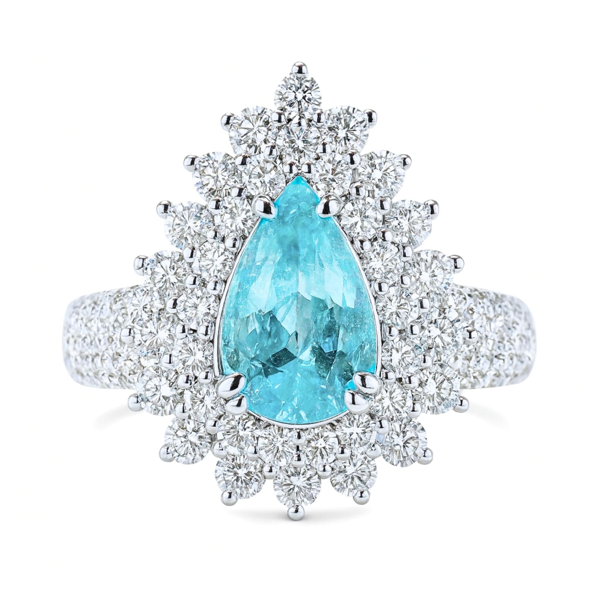 14K 1.31ct Pear Shape Paraiba 1.47cttw VS White Diamonds Ring