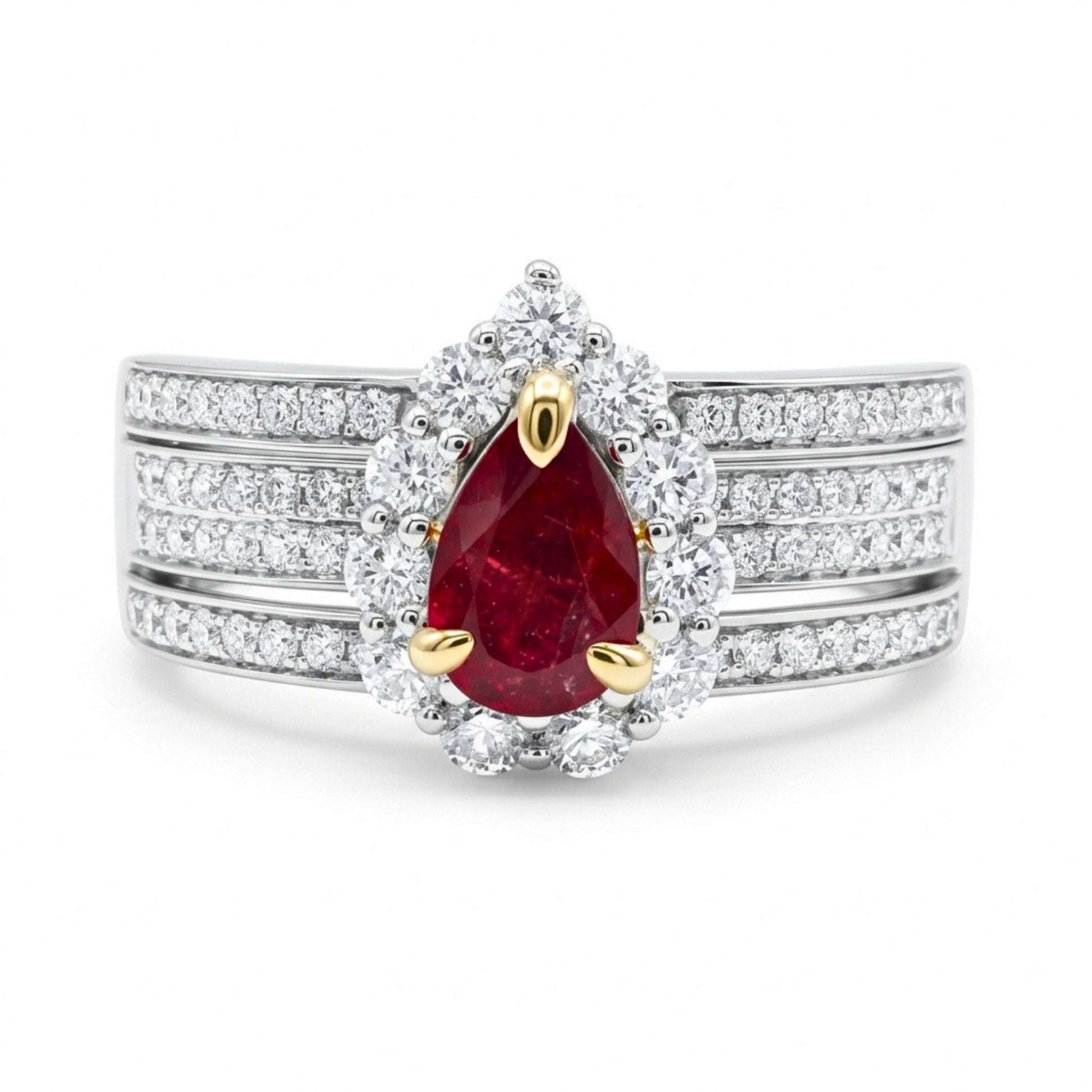 14K 0.45ct Pear Shape Red Beryl 0.85cttw VS White Diamonds Ring