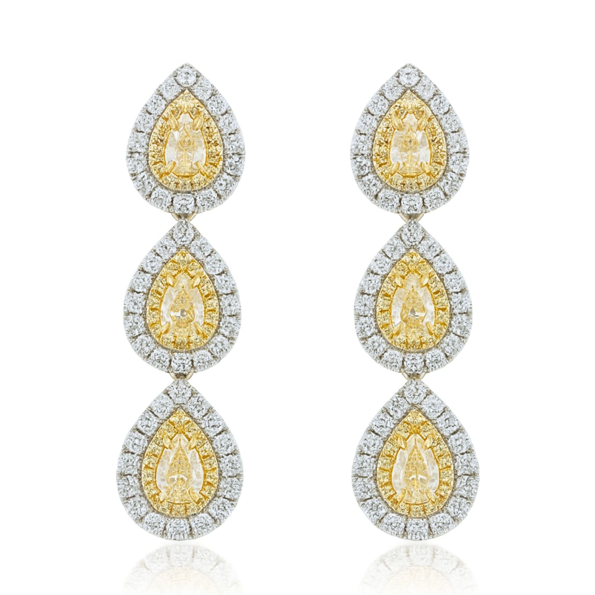 14K 1.50cttw Pear Shape VS Yellow Diamond 2.18cttw VS Yellow & White Diamonds Drop Earrings