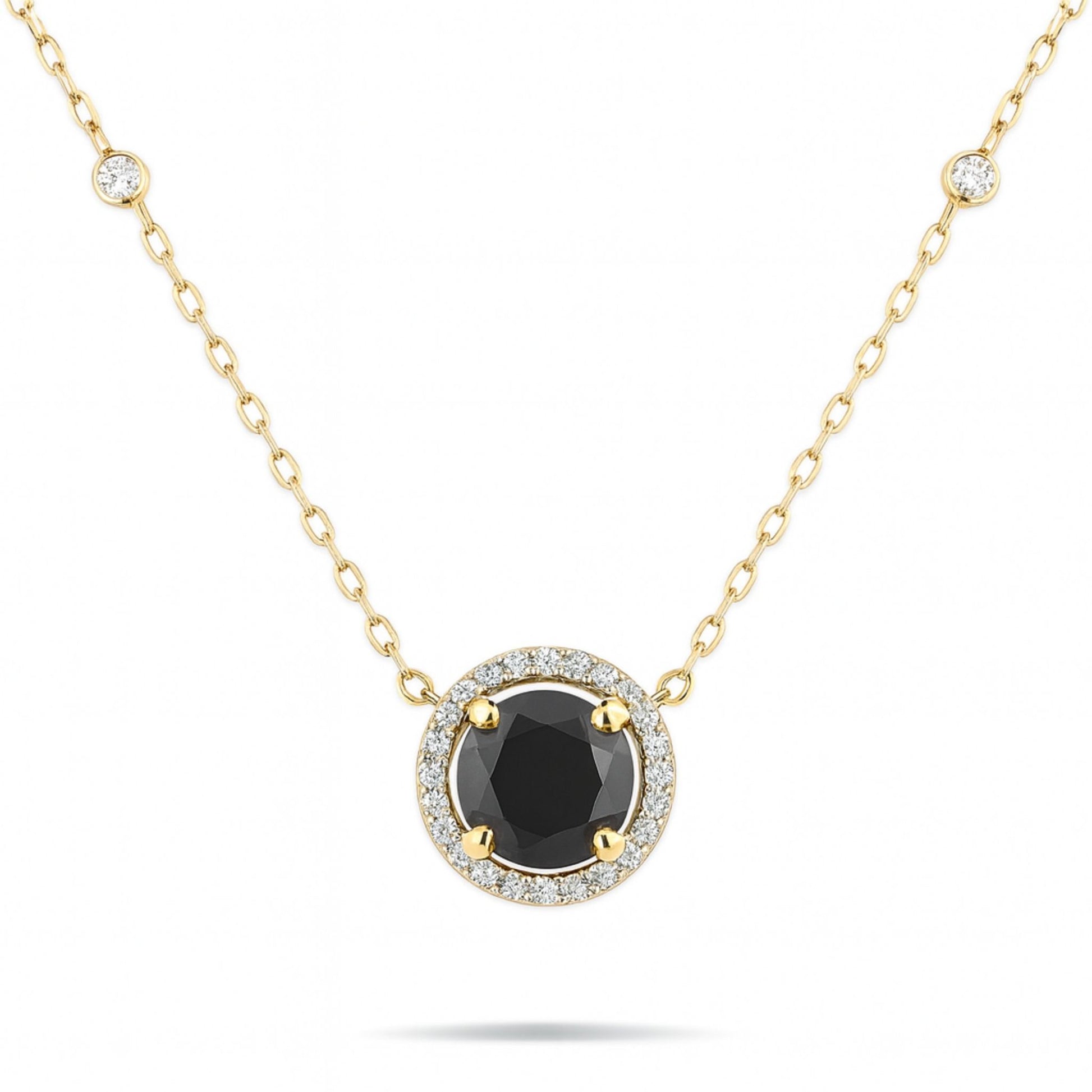 14K 1.87ct Round Black Diamond 0.21cttw VS White Diamonds Necklace