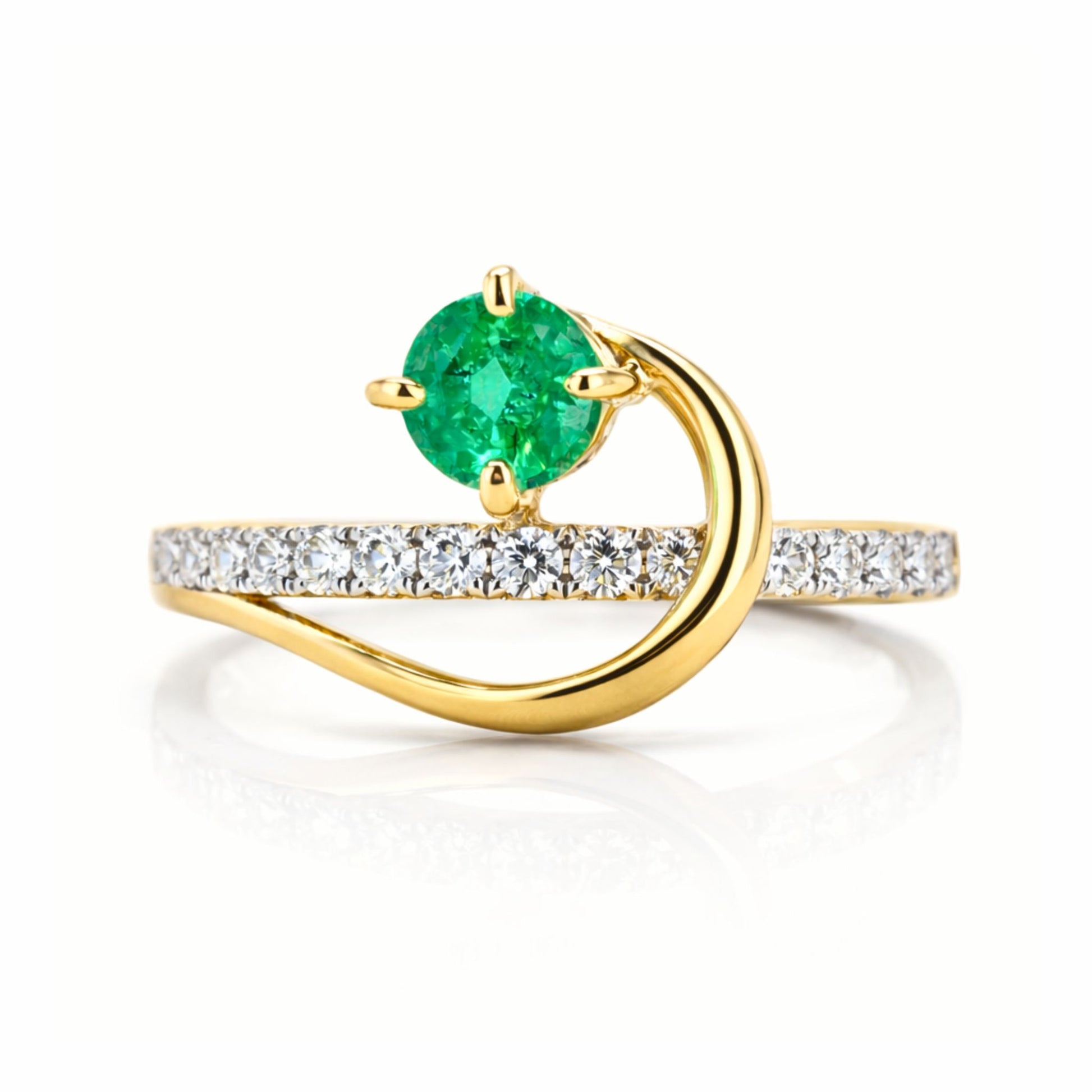 14K 0.50ct Round Colombian Emerald 0.26cttw VS White Diamonds Ring