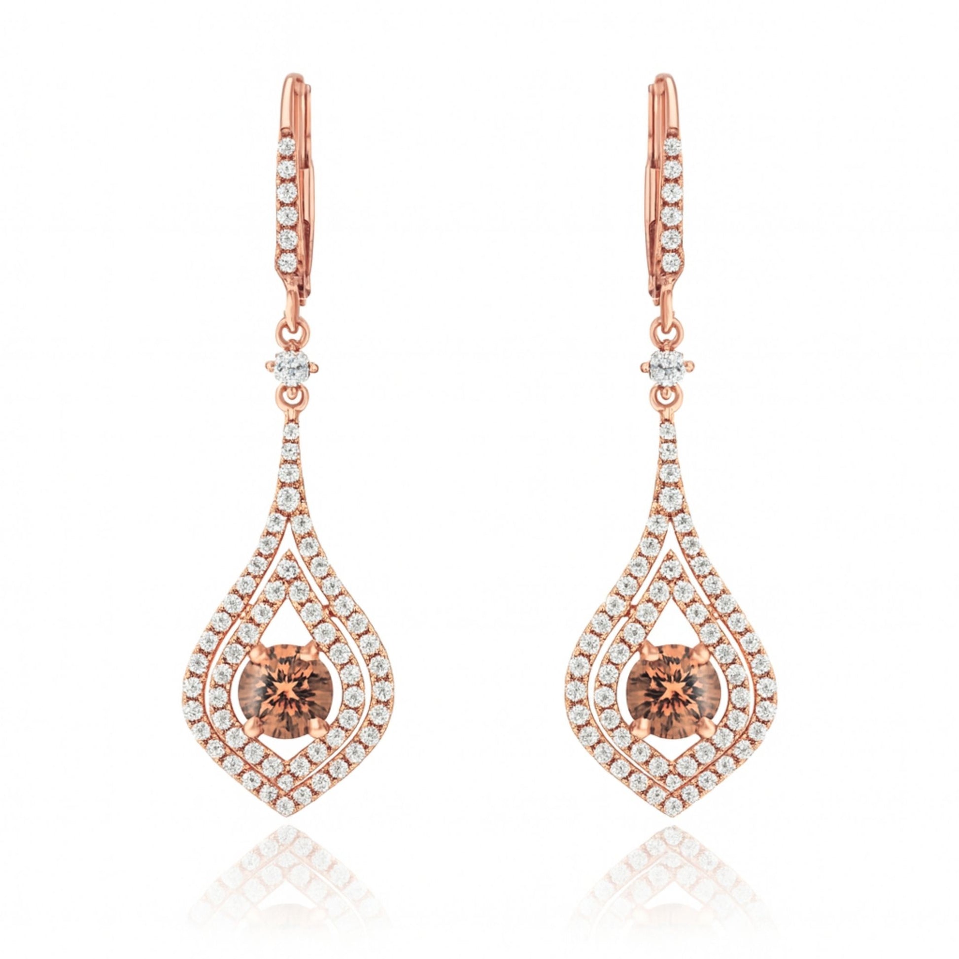 14K 1.11cttw Round VS Fawn Diamond 0.83cttw VS White Diamonds Drop Earrings