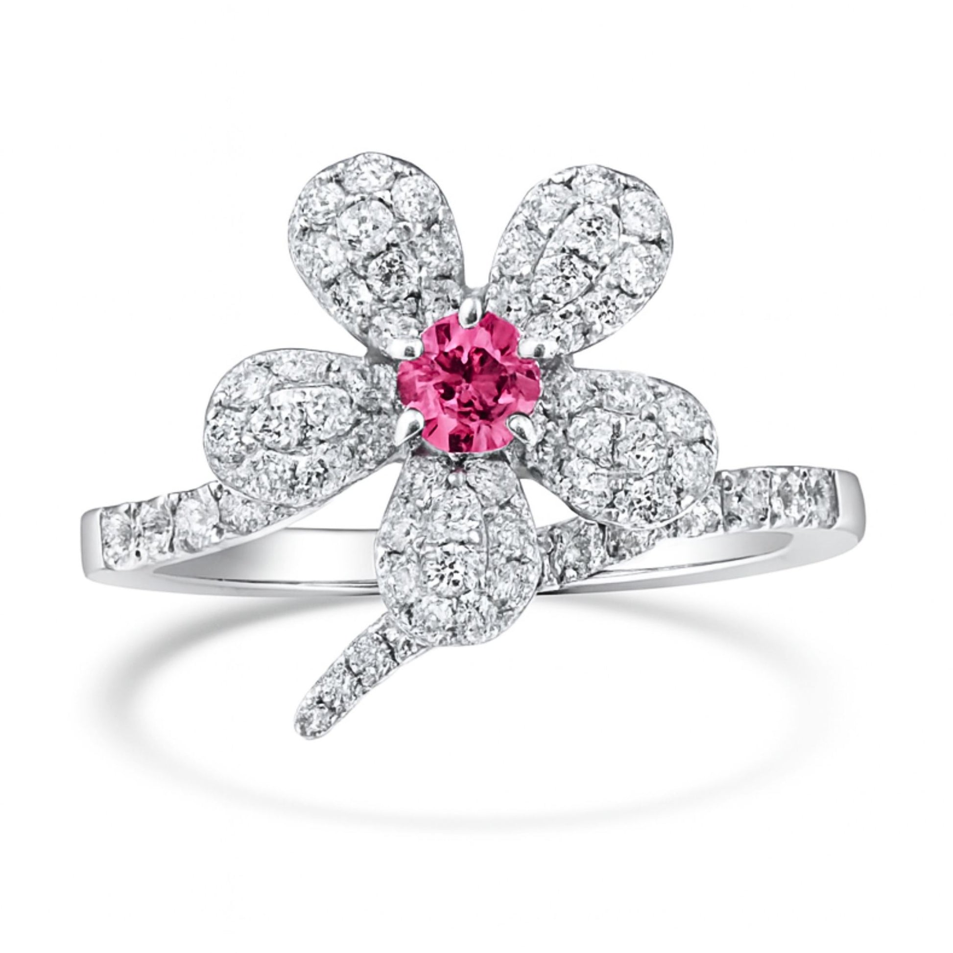 14K 0.18ct Round Mahenge Pink Spinel 0.82cttw White Diamonds Ring