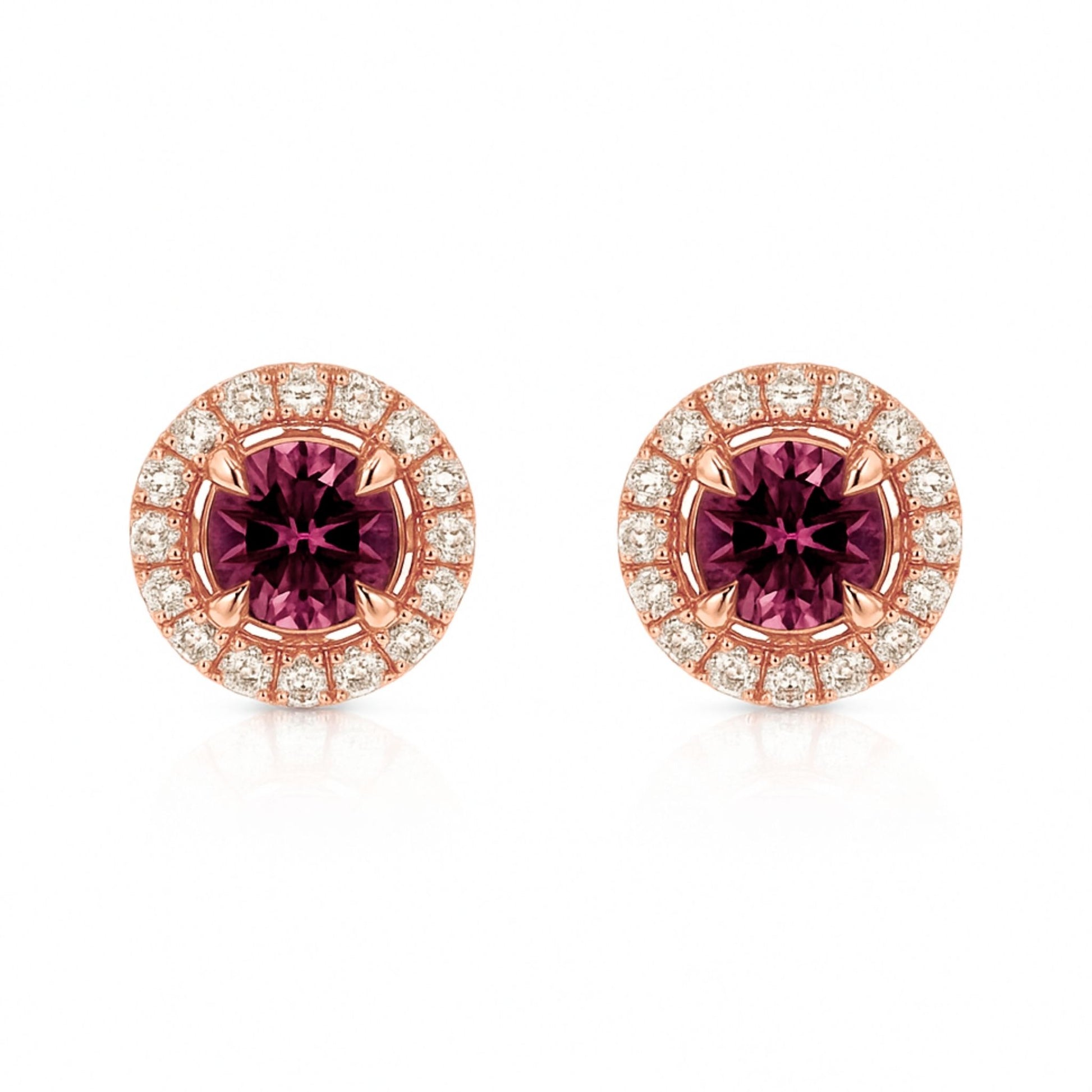 14K 1.12cttw Round Malaya Garnet 0.26cttw VS White Diamonds Stud Earrings