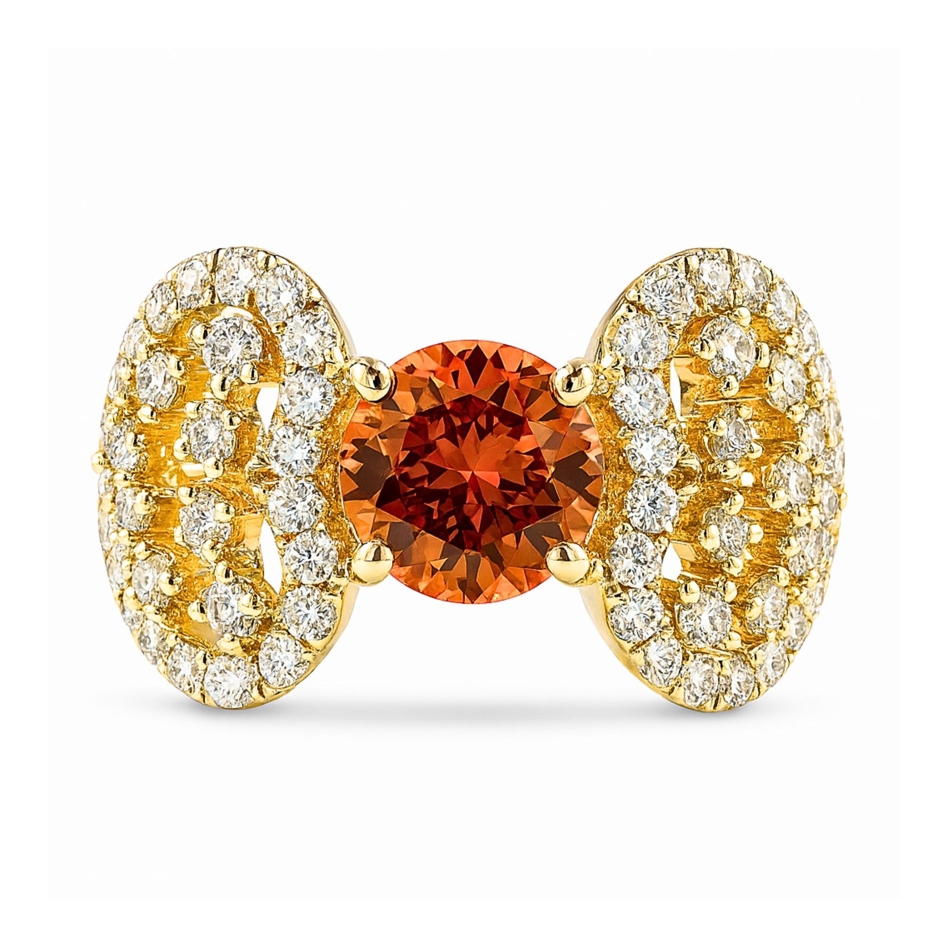 14K 1.59ct Round Private Collection Mandarin Garnet 1.09cttw VS White Diamonds Ring