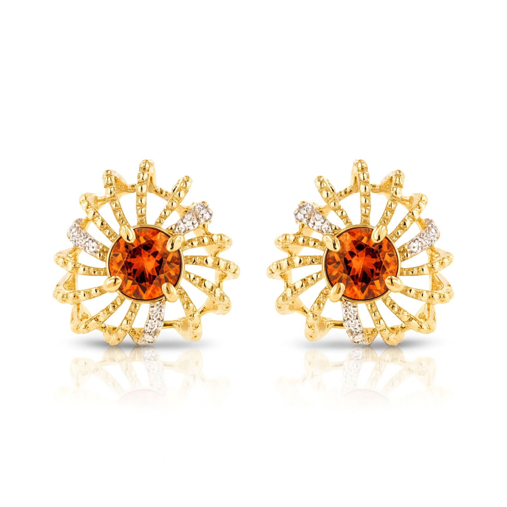 14K 1.50cttw Round Mandarin Garnet 0.34cttw VS White Diamonds Stud Earrings